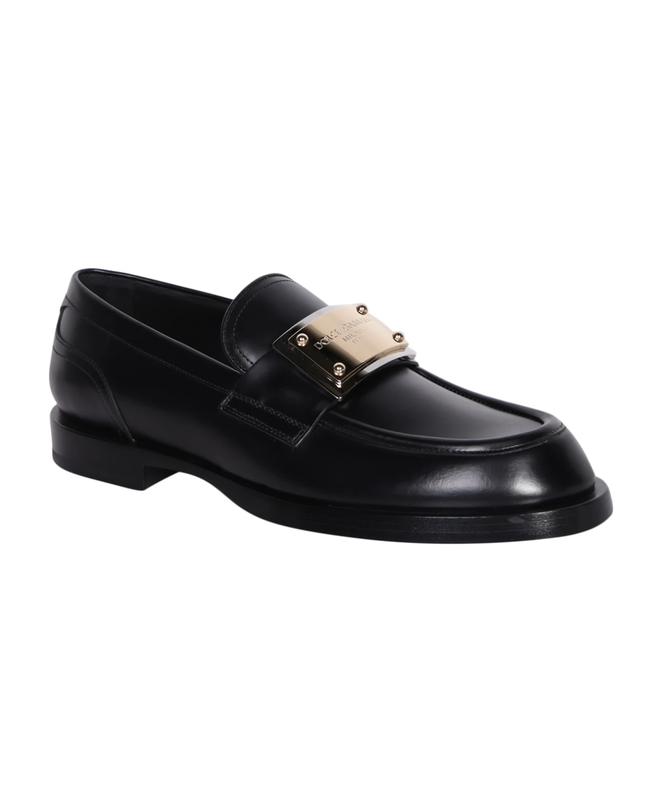 Round toe. Logo plaque. Slip-on design. Branded insole. Color: black