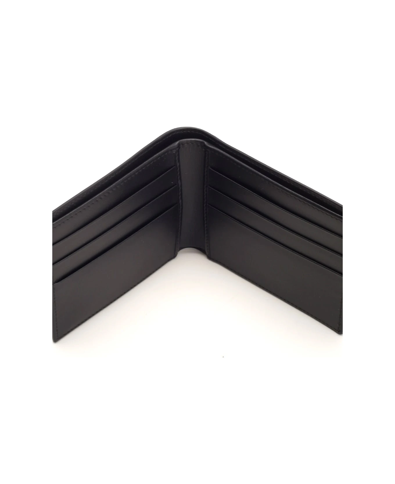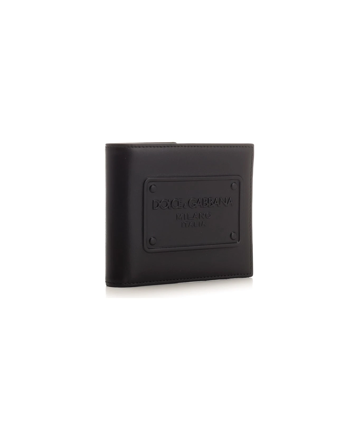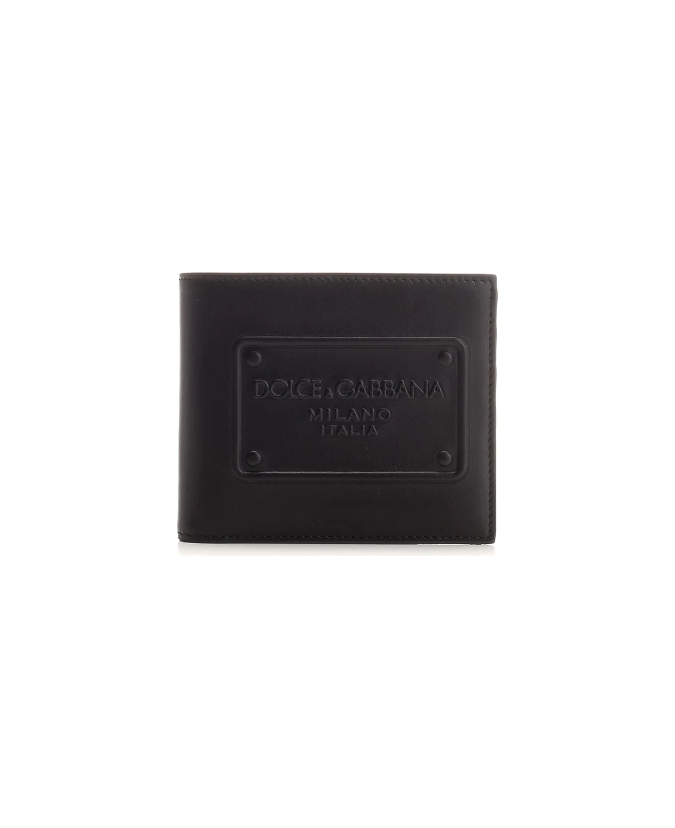 Bi-fold wallet with embossed logo from Dolce & Gabbana in black calf leather, six card slots, two side flat pockets, one compartment for banknotes.