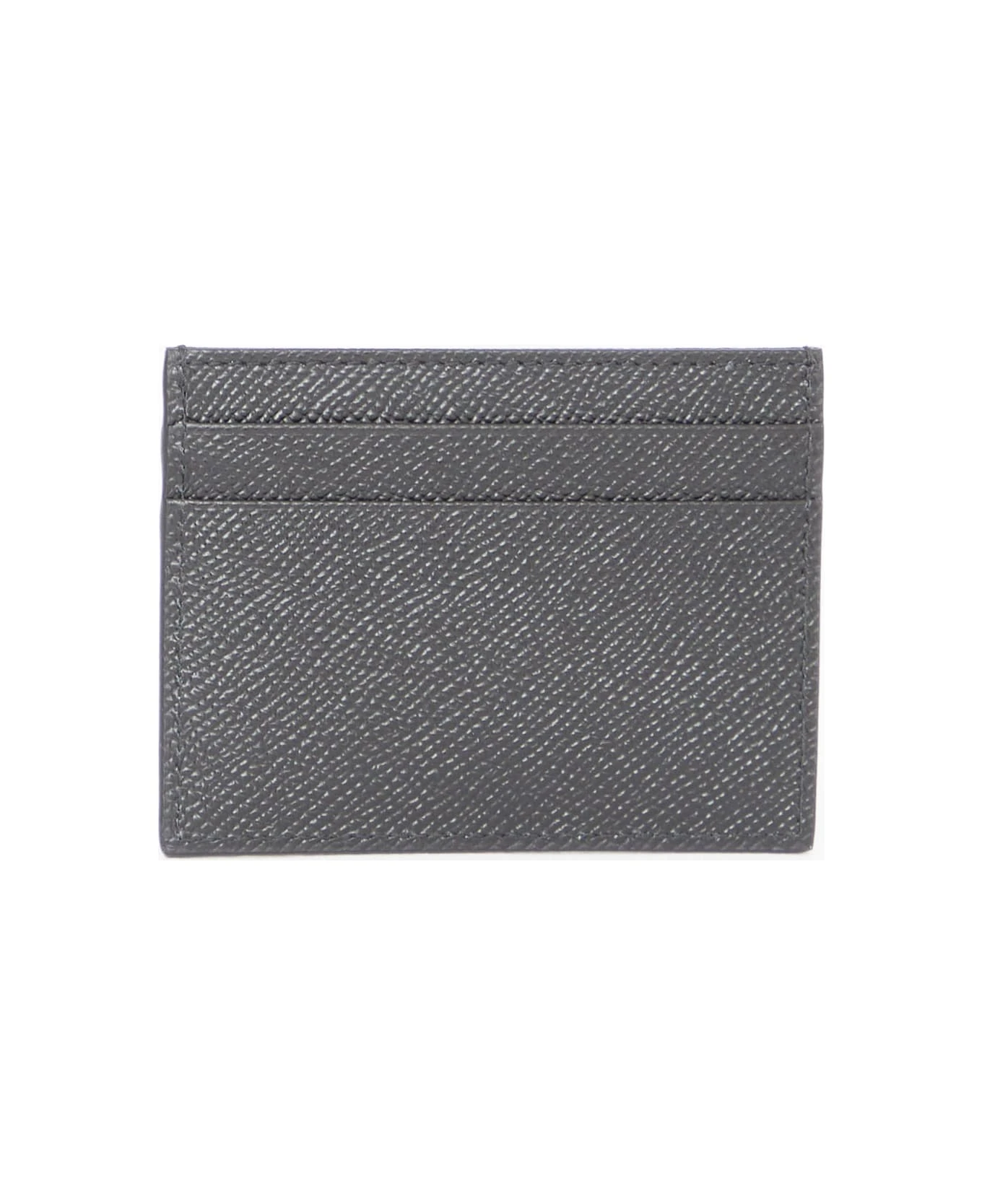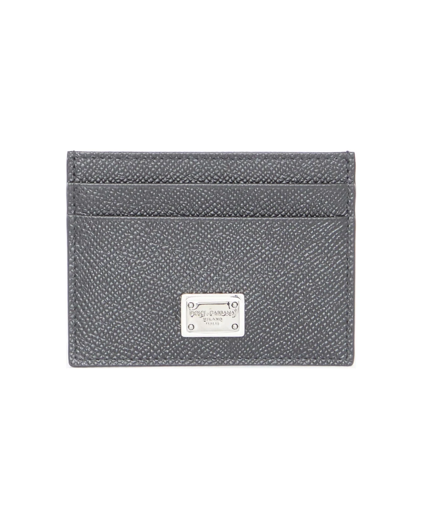 Cardholder in black grained calfskin with Dolce & Gabbana metal plate on the front. Four card slots and one top compartment.