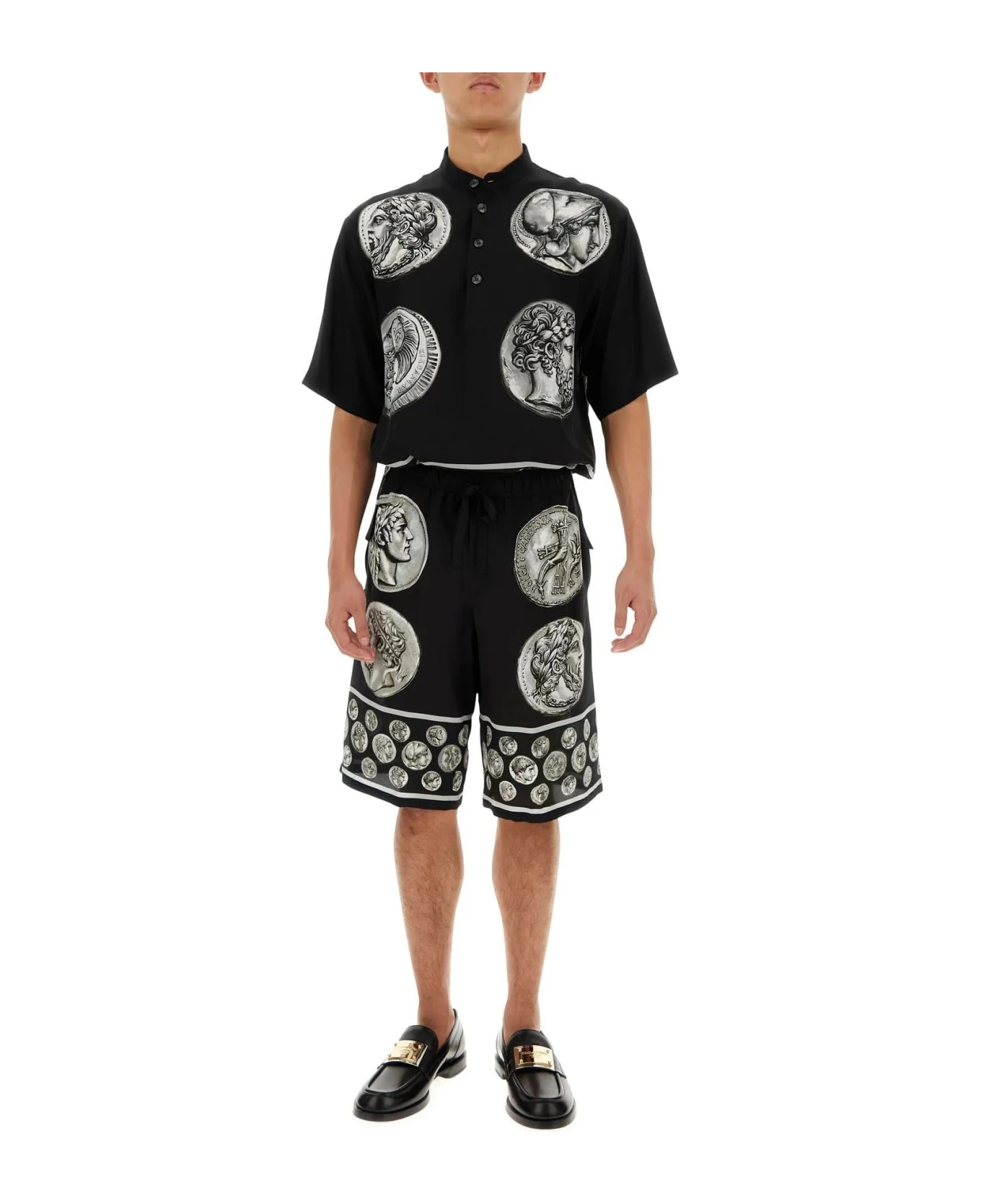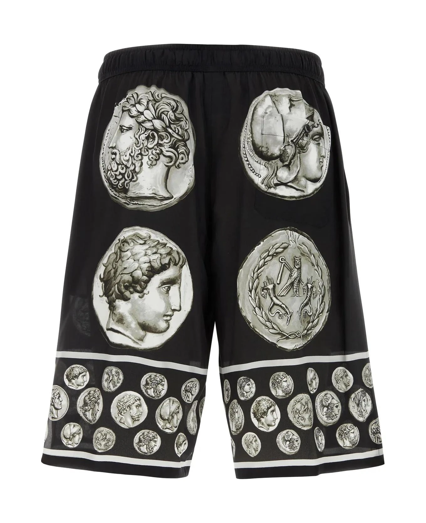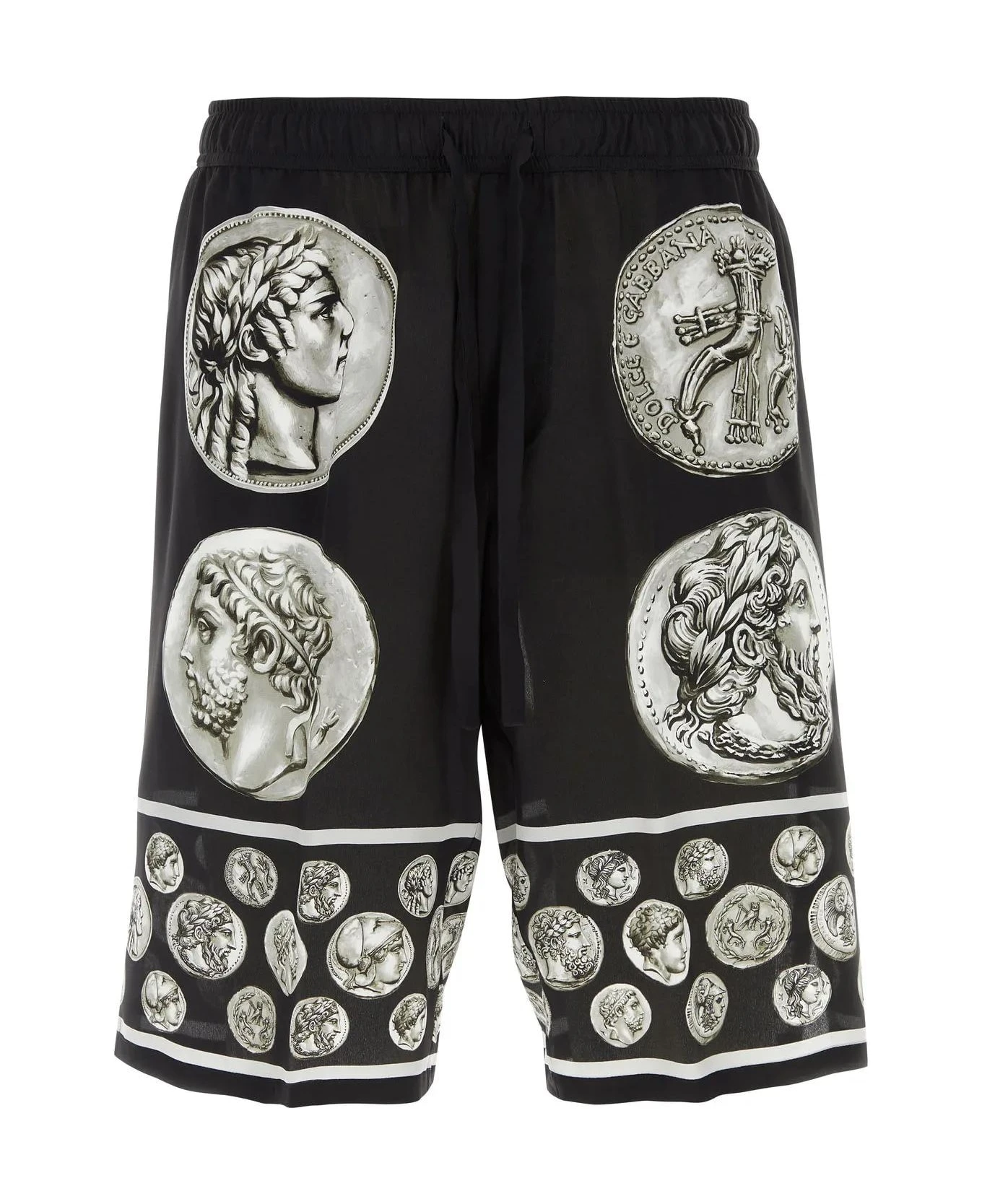 Bermuda shorts realized in pure silk crepe characterized by Coins print at the front and the back.