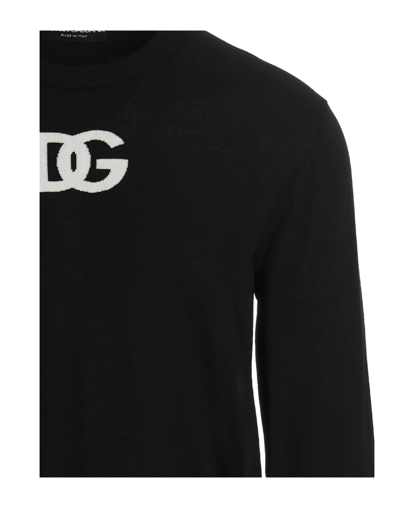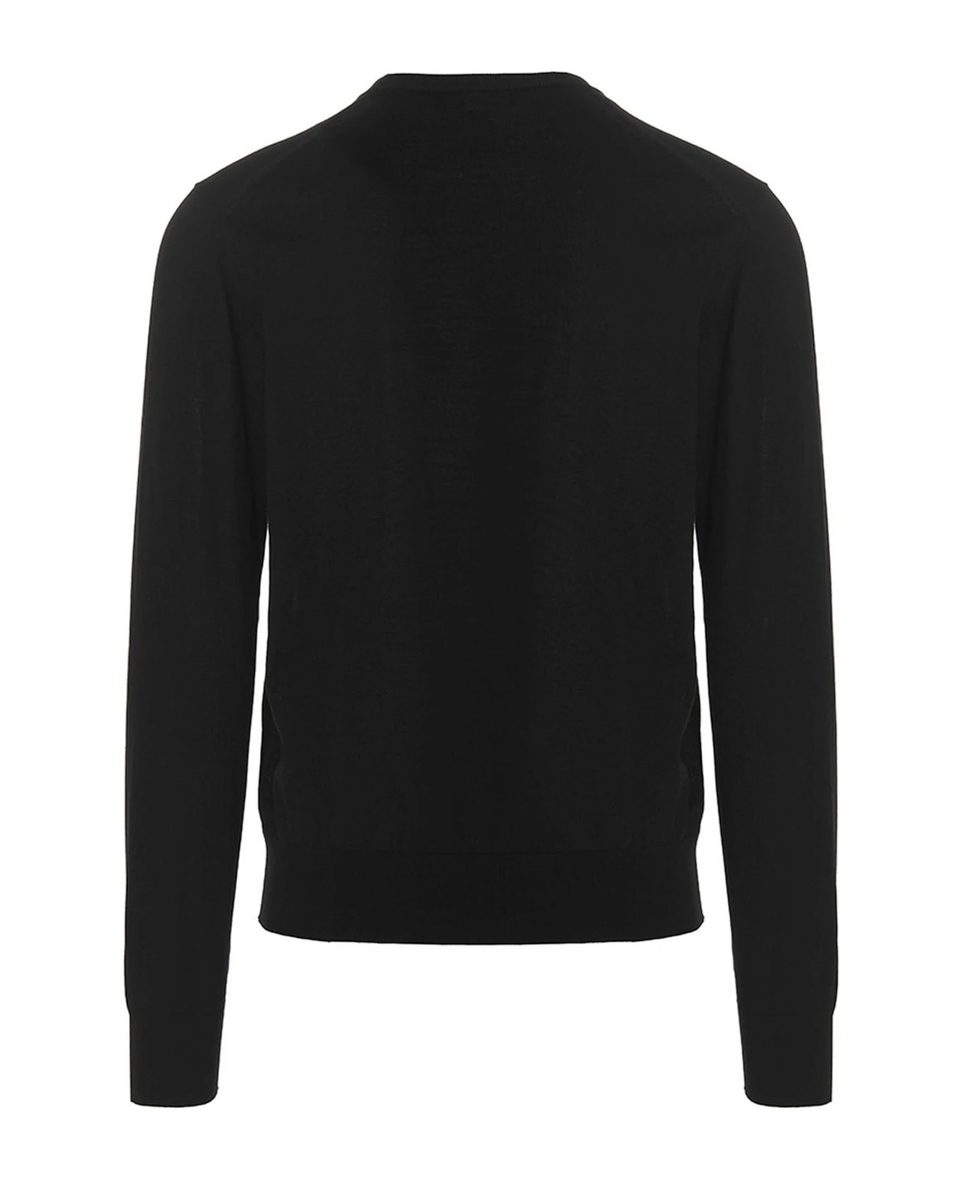 Black Sicily’ wool blend sweater with front jacquard logo, a crewneck, and long cuffed sleeves.