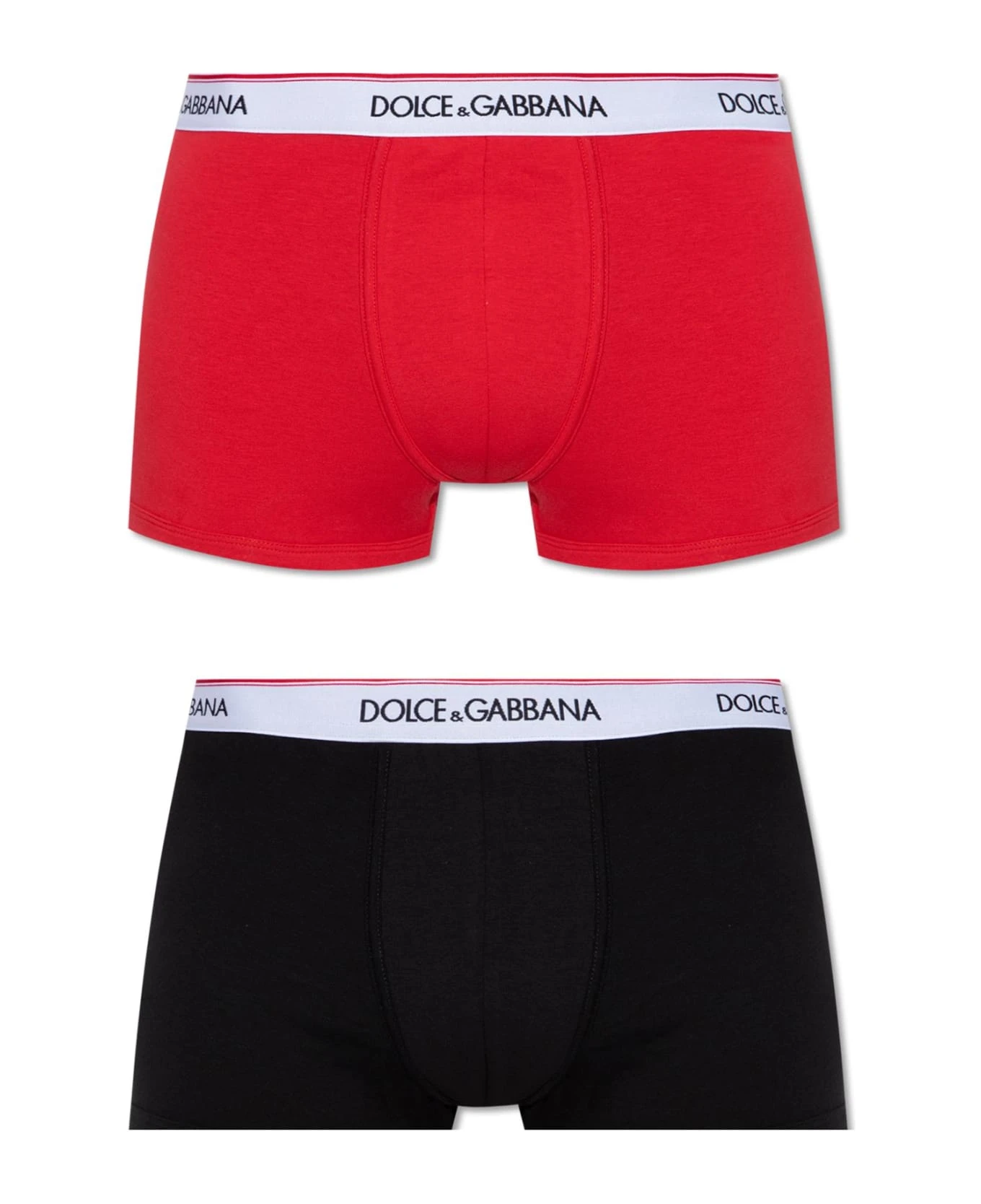 2-pack of boxers in black and red from Dolce & Gabbana. Made of cotton, each pair has a white elastic waistband embroidered with a black logo.