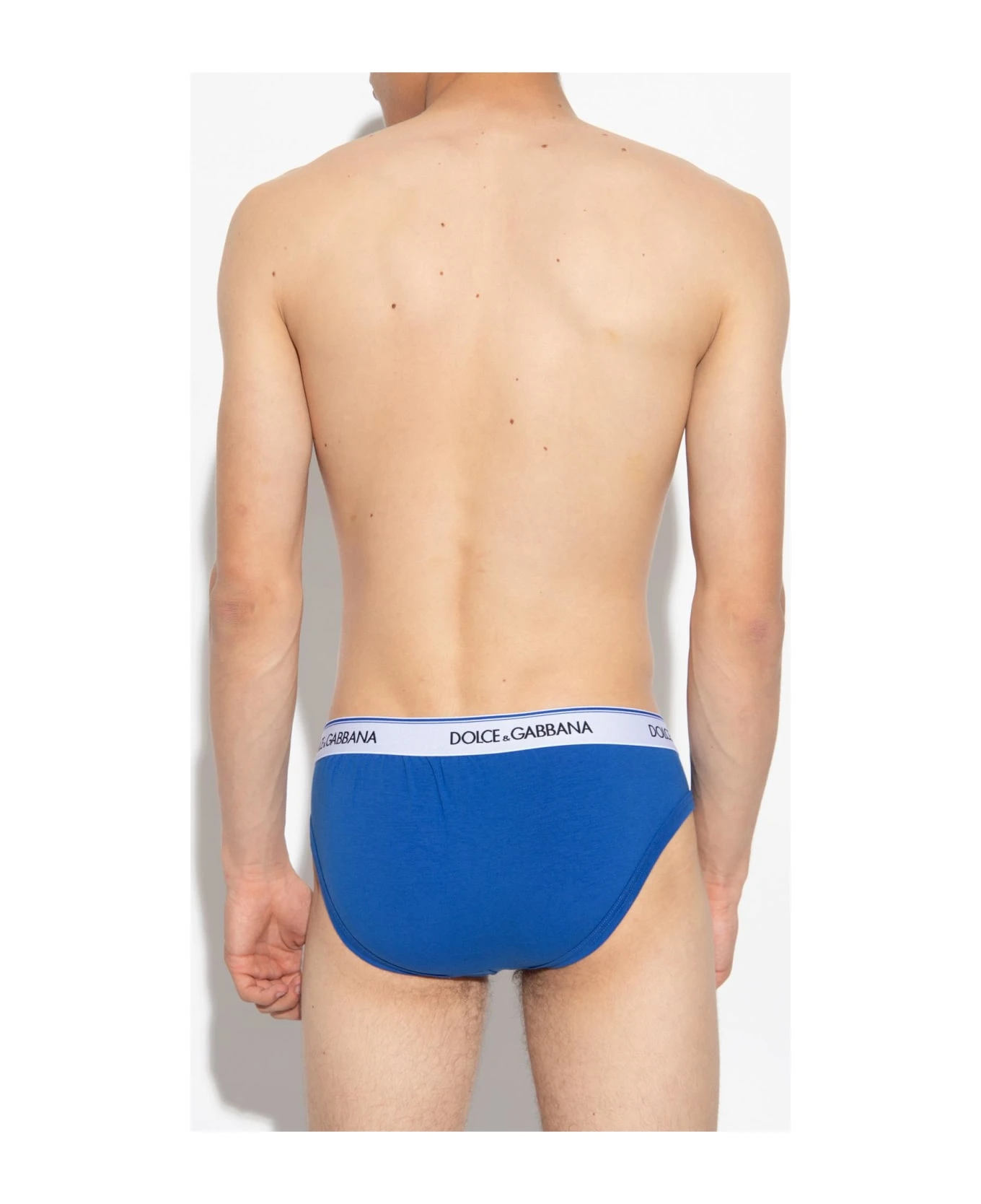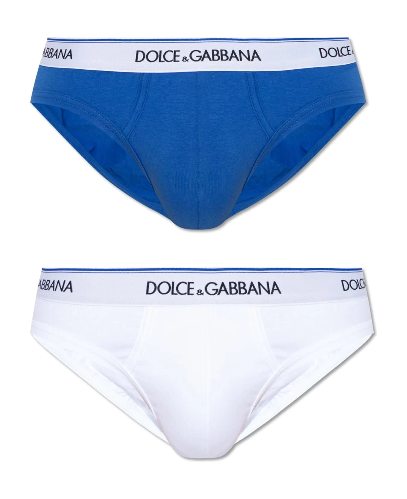 2-pack of briefs in white and blue from Dolce & Gabbana. Made of cotton, each pair has a white elastic waistband embroidered with a black logo.