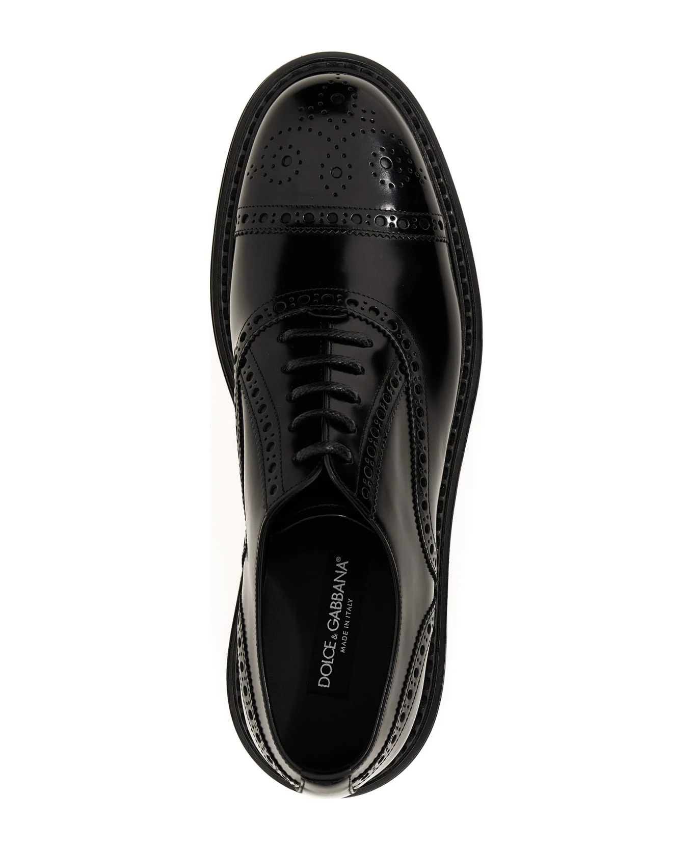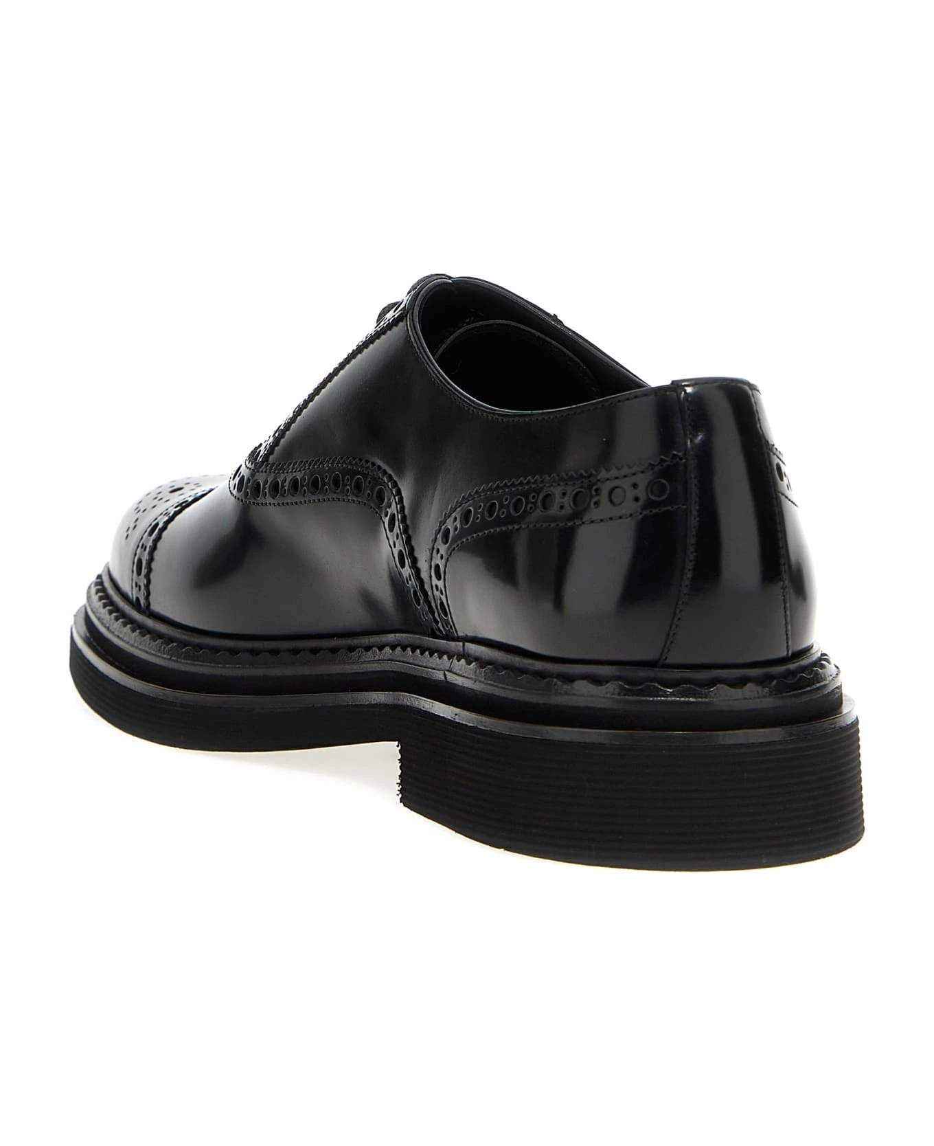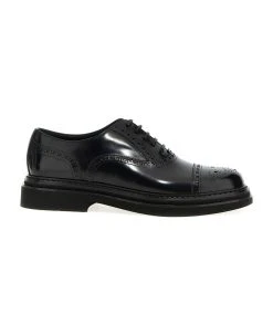 Brogue calf leather lace up shoes featuring a rubber sole.