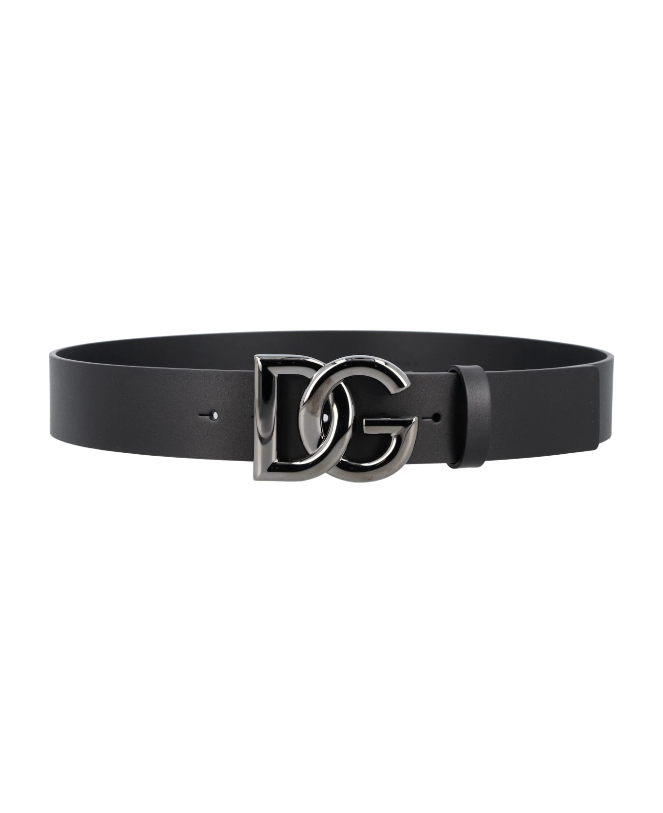 Lux Leather Belt With Crossover Dg Logo Buckle By Dolce & Gabbana. Featuring: