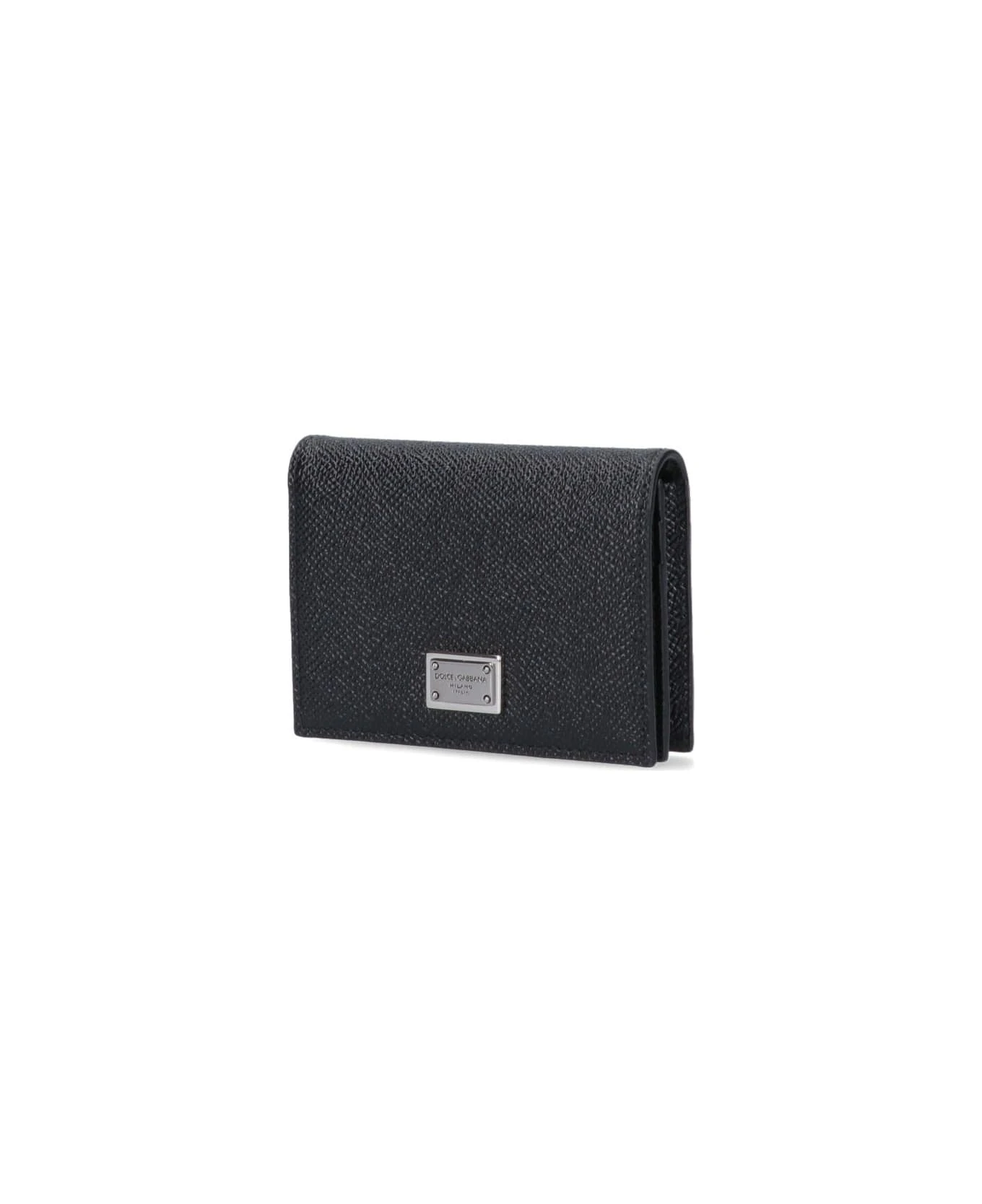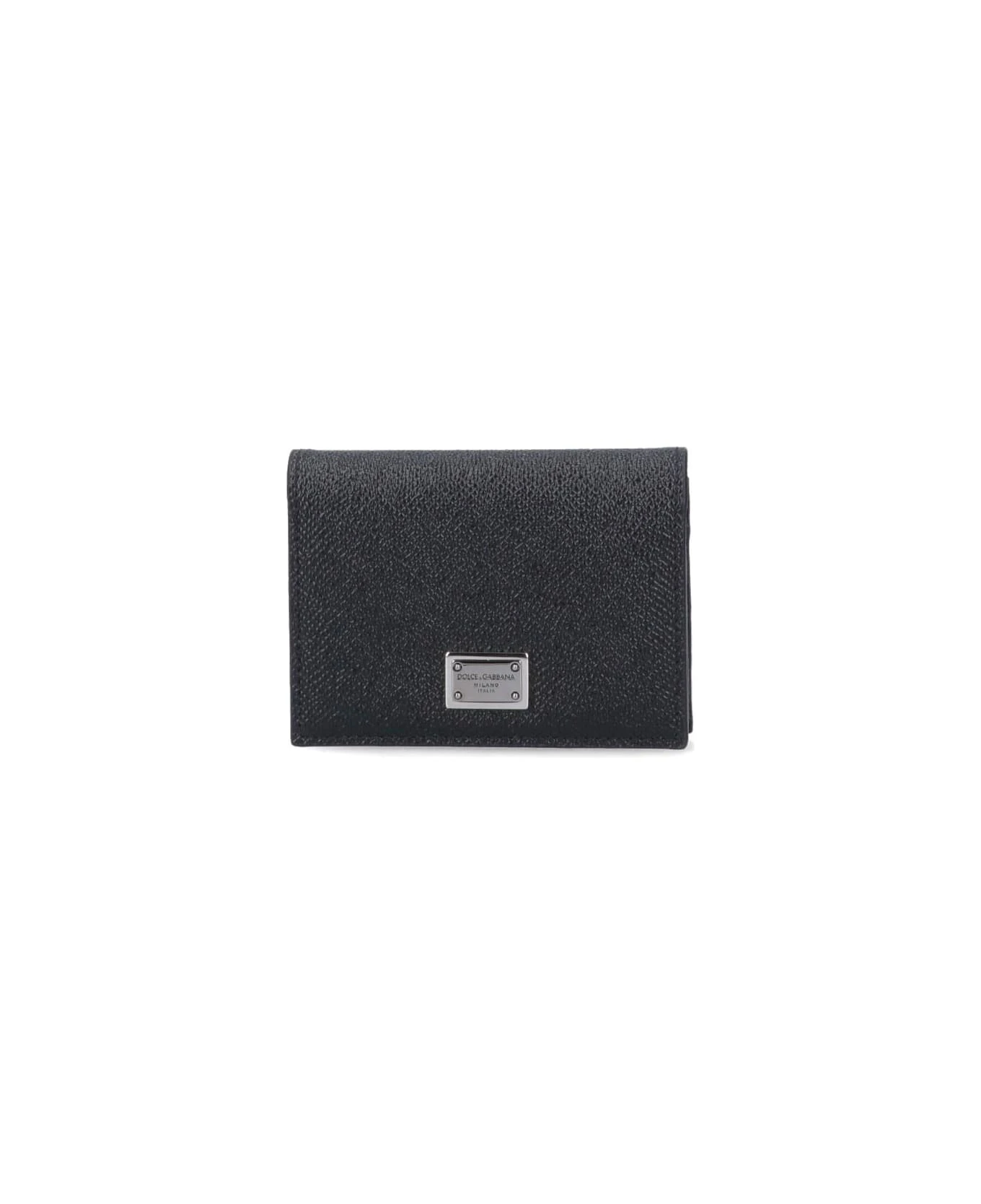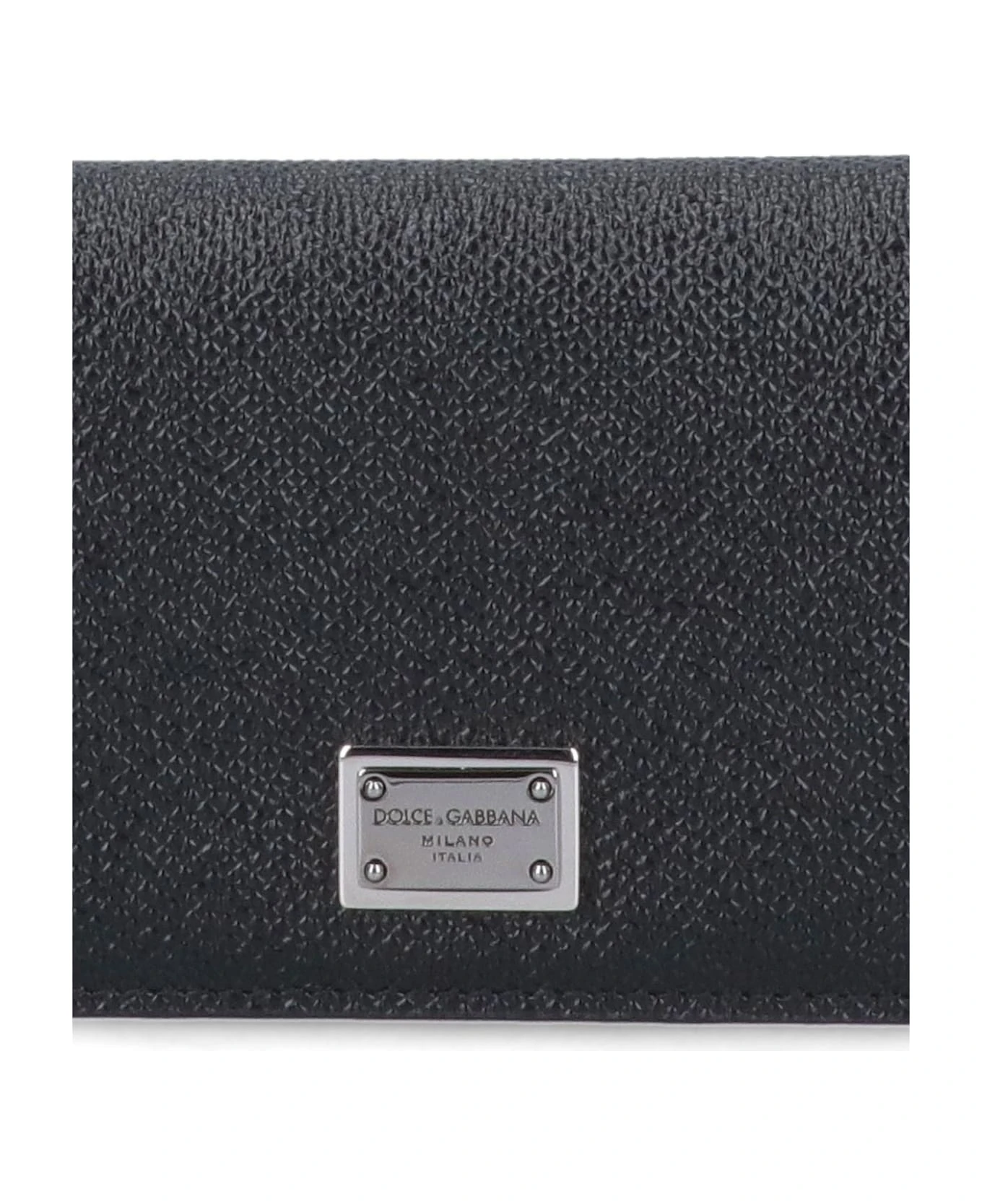 Dolce & Gabbana ‘Dauphine’ Card Holder, black leather, silver logo plate front, snap button closure, three interior card slots, one interior flat pocket.