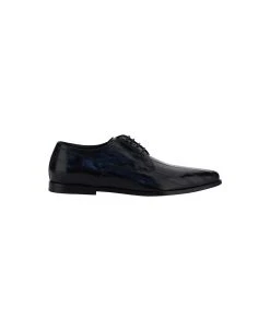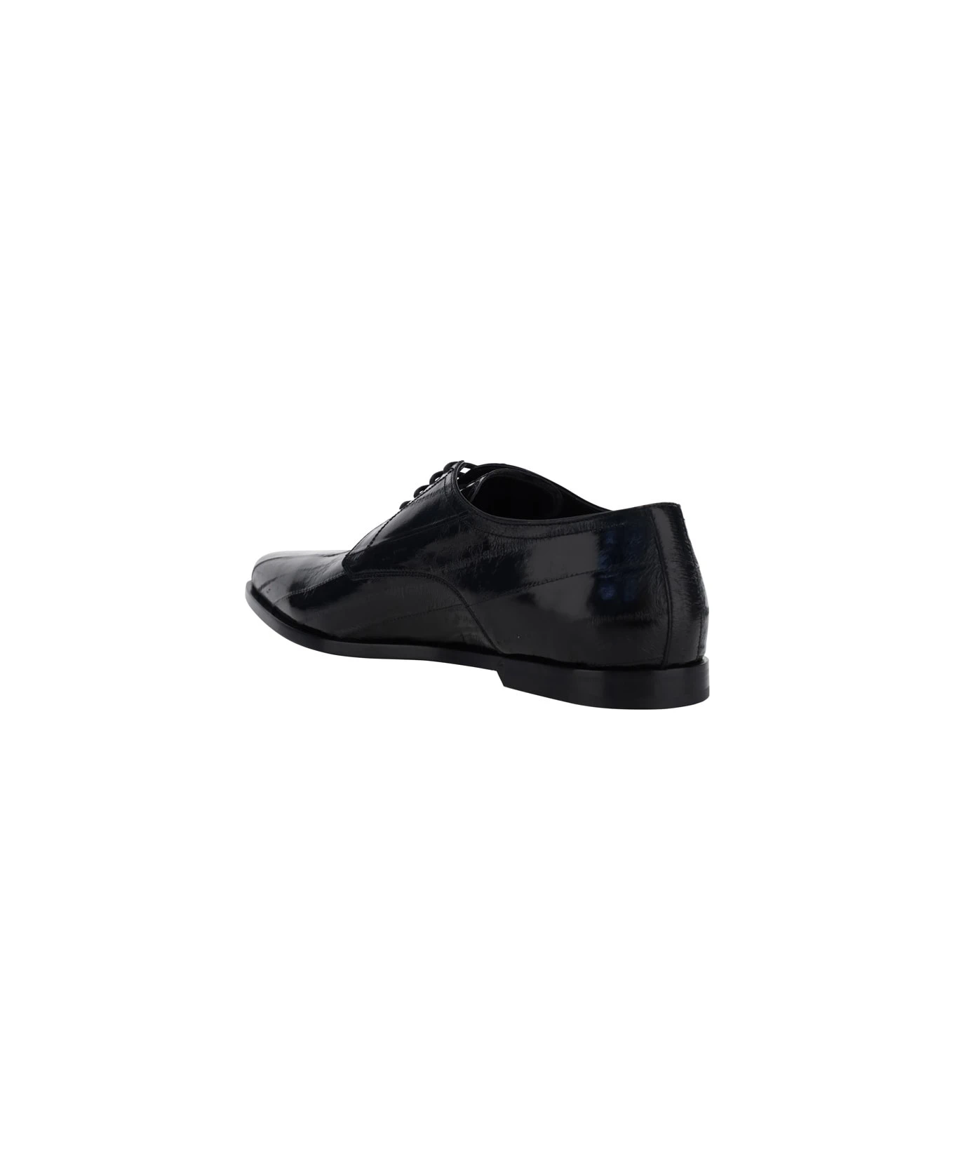 Calfskin derby anguilla shoes by dolce&gabbana, pointed toe, glossy leather with stripe detail with tone on tone trim, front lace-up closure, logoed insole.