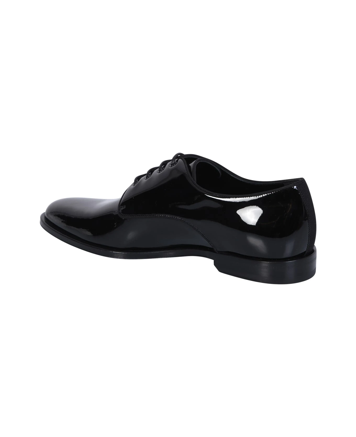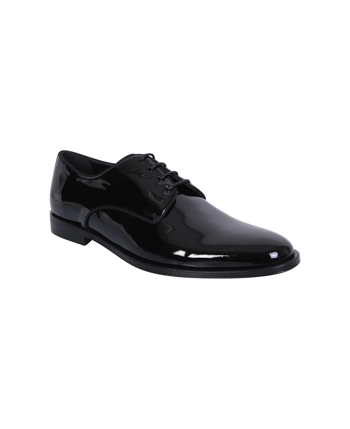 Almond toe. Front lace-up fastening. Branded insole. High-shine finish. Color: black