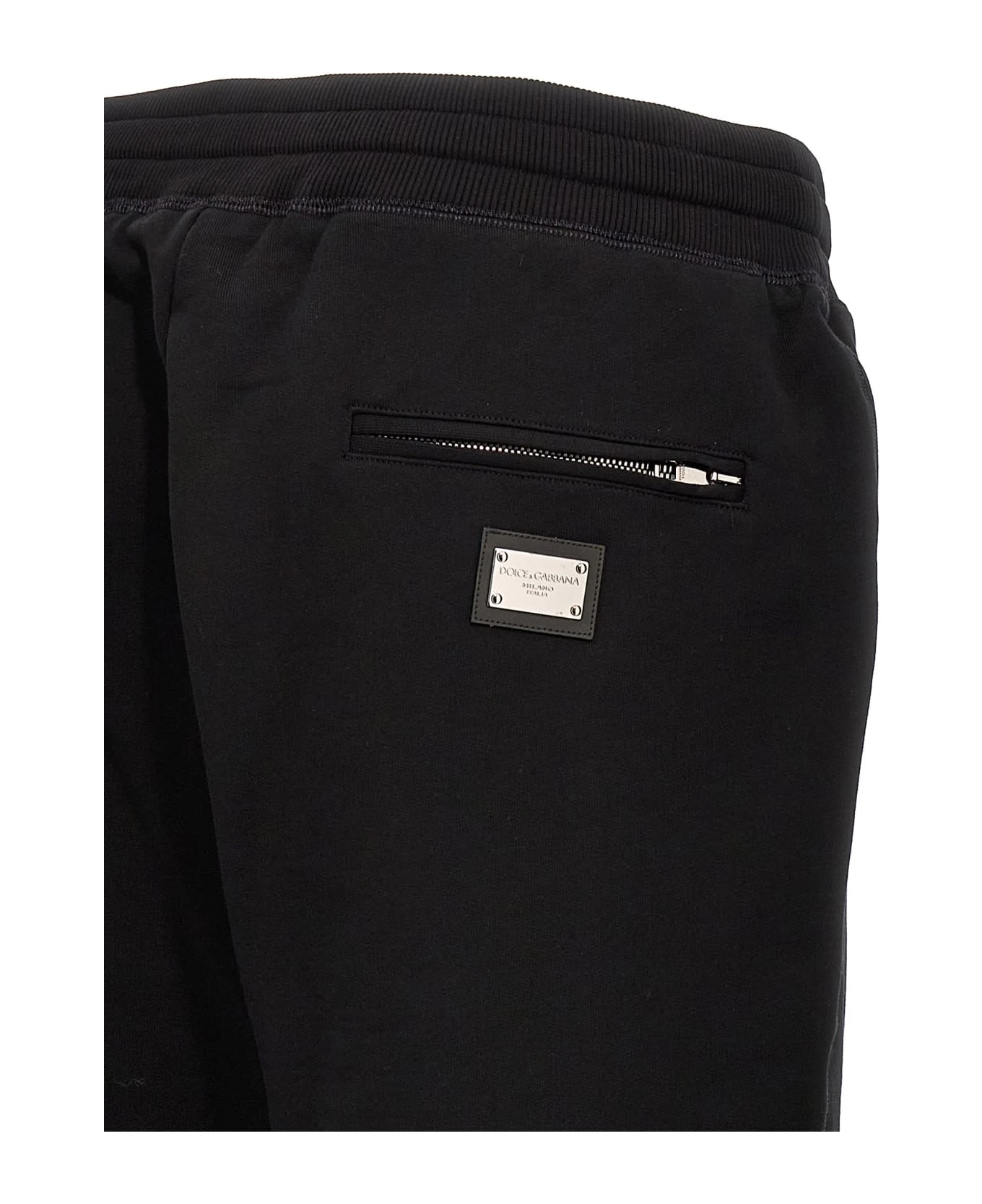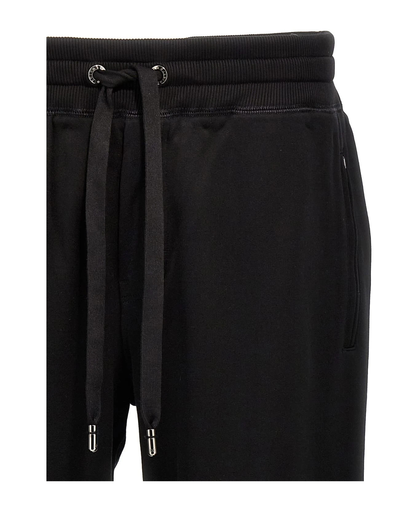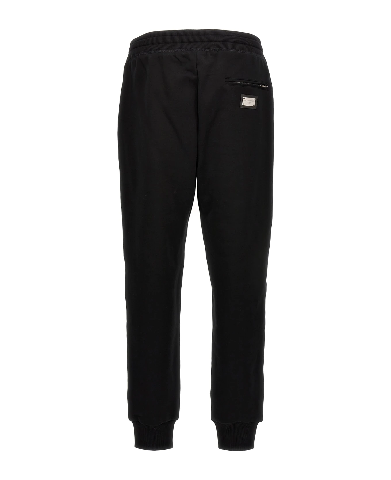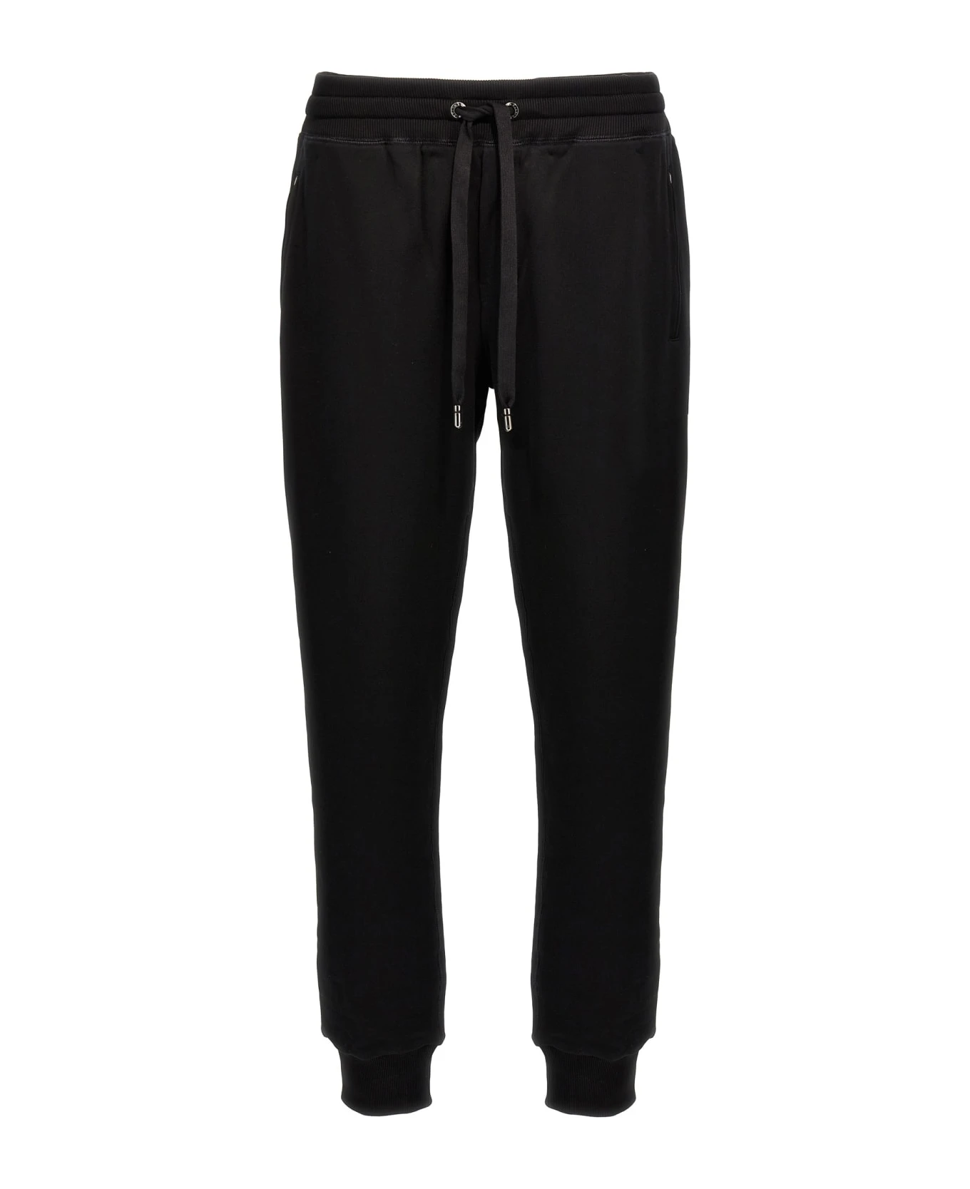 DG Essential cotton pants with drawstring elastic waistband, pockets, elastic ankle cuffs, and logo plaque at the back.