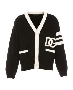 cardigan with frontal buttons closure, frontal logo, frontal pockets, v-nrck