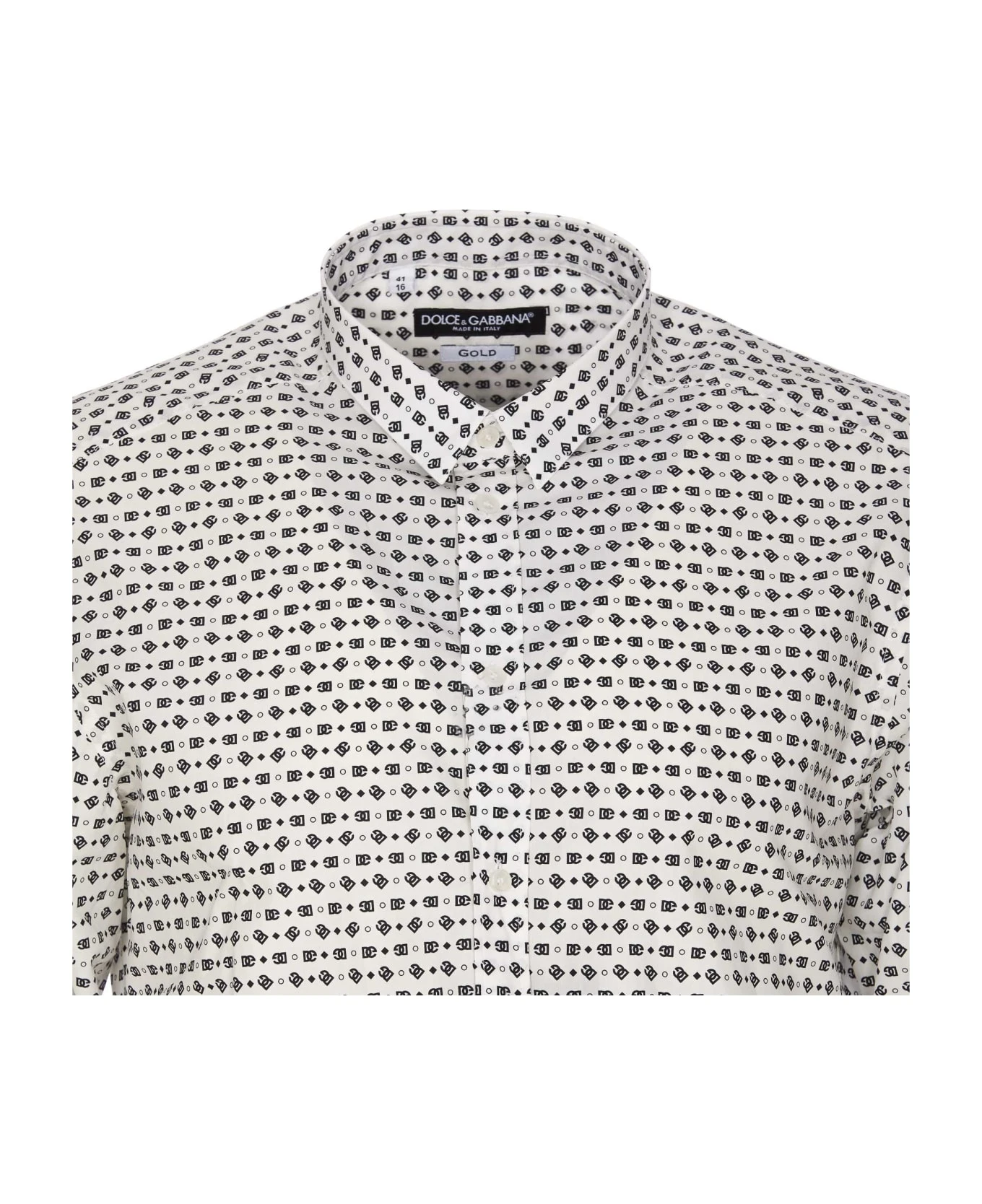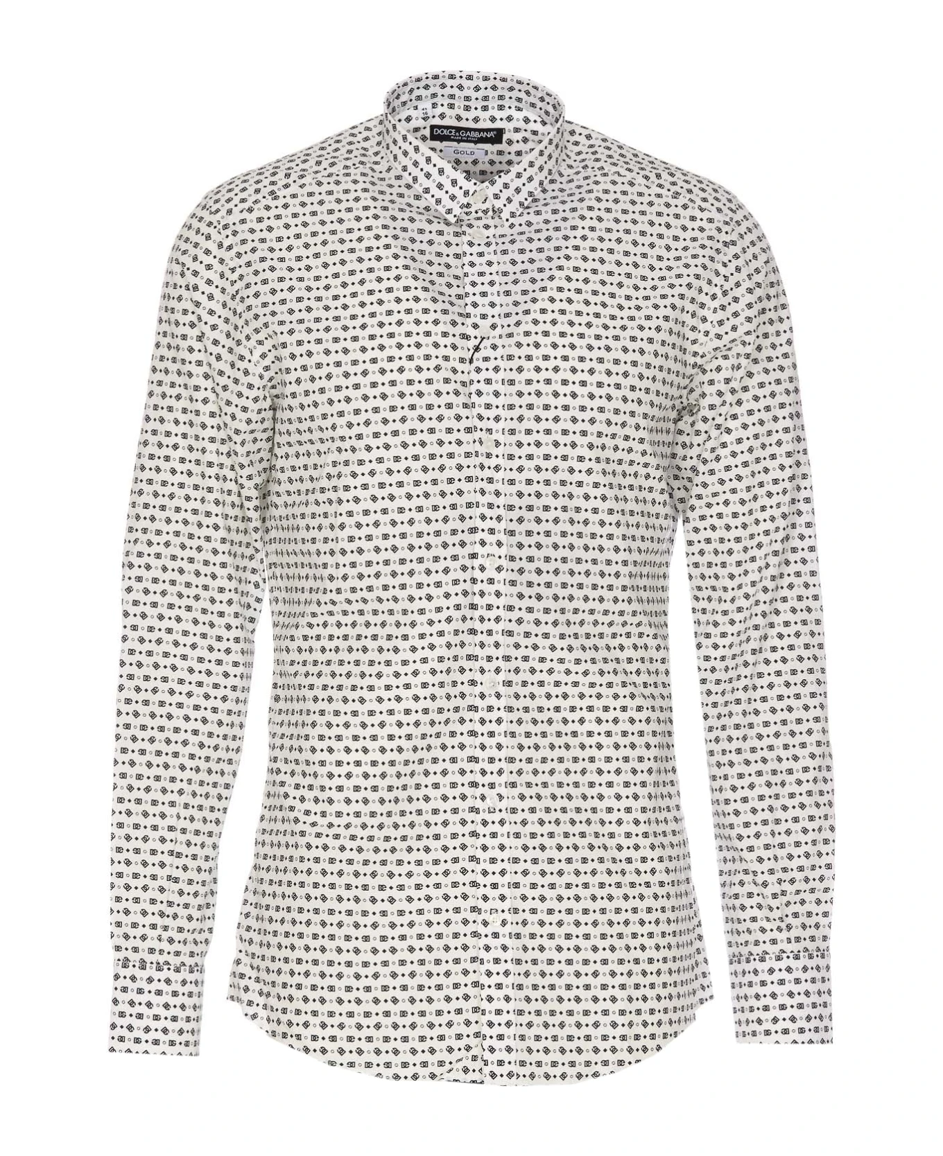 Dolce&Gabbana white shirt with frontal buttons closure, regular collar, long sleeves, print logo