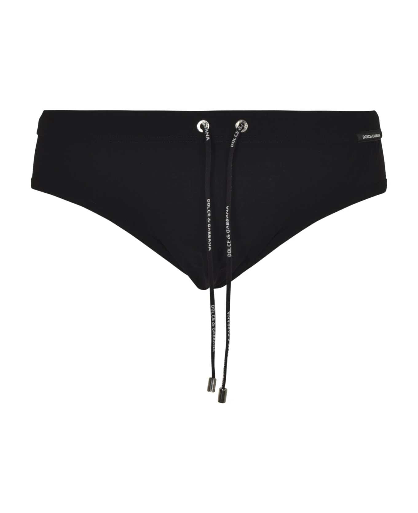 Dolce & Gabbana Black Swim Briefs With Branded Drawstring And Logo Tag In Stretch Polyamide Man
