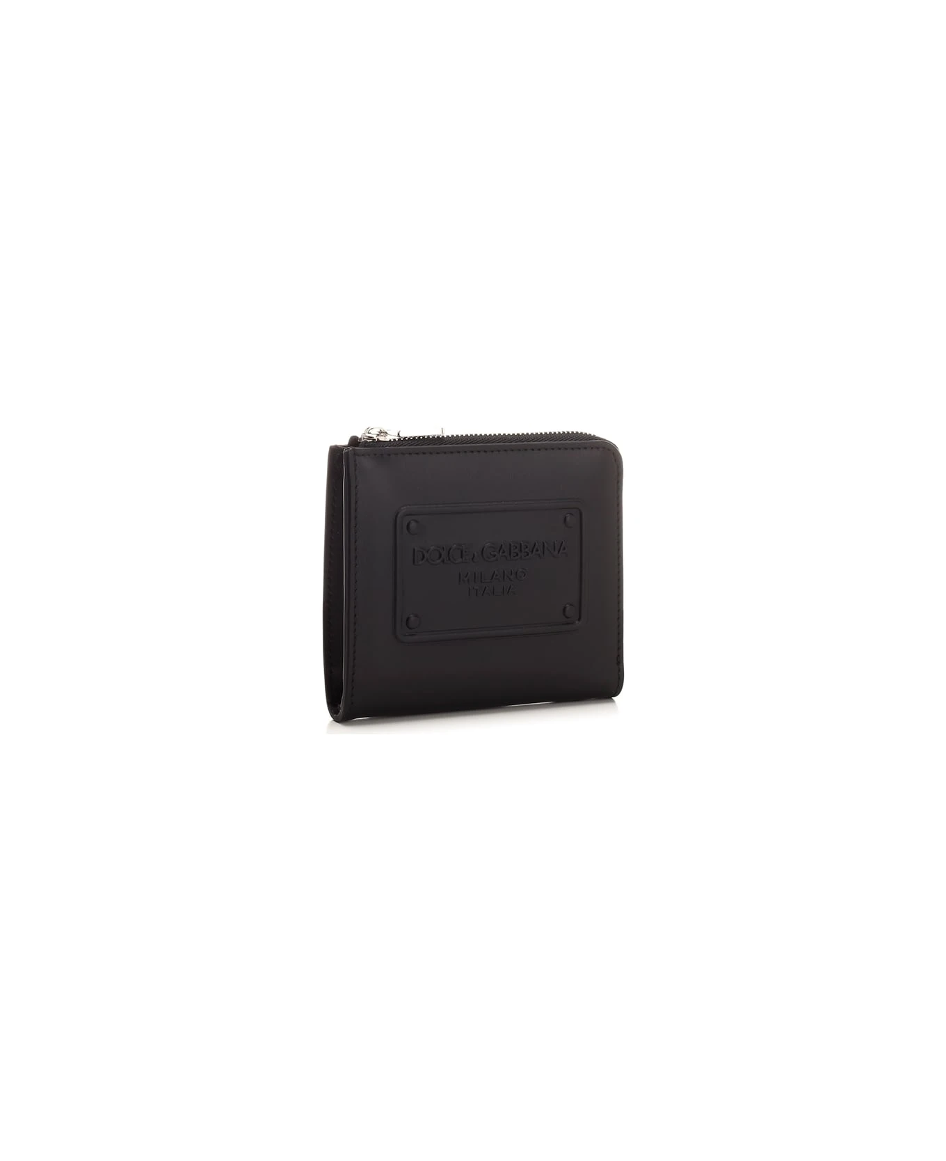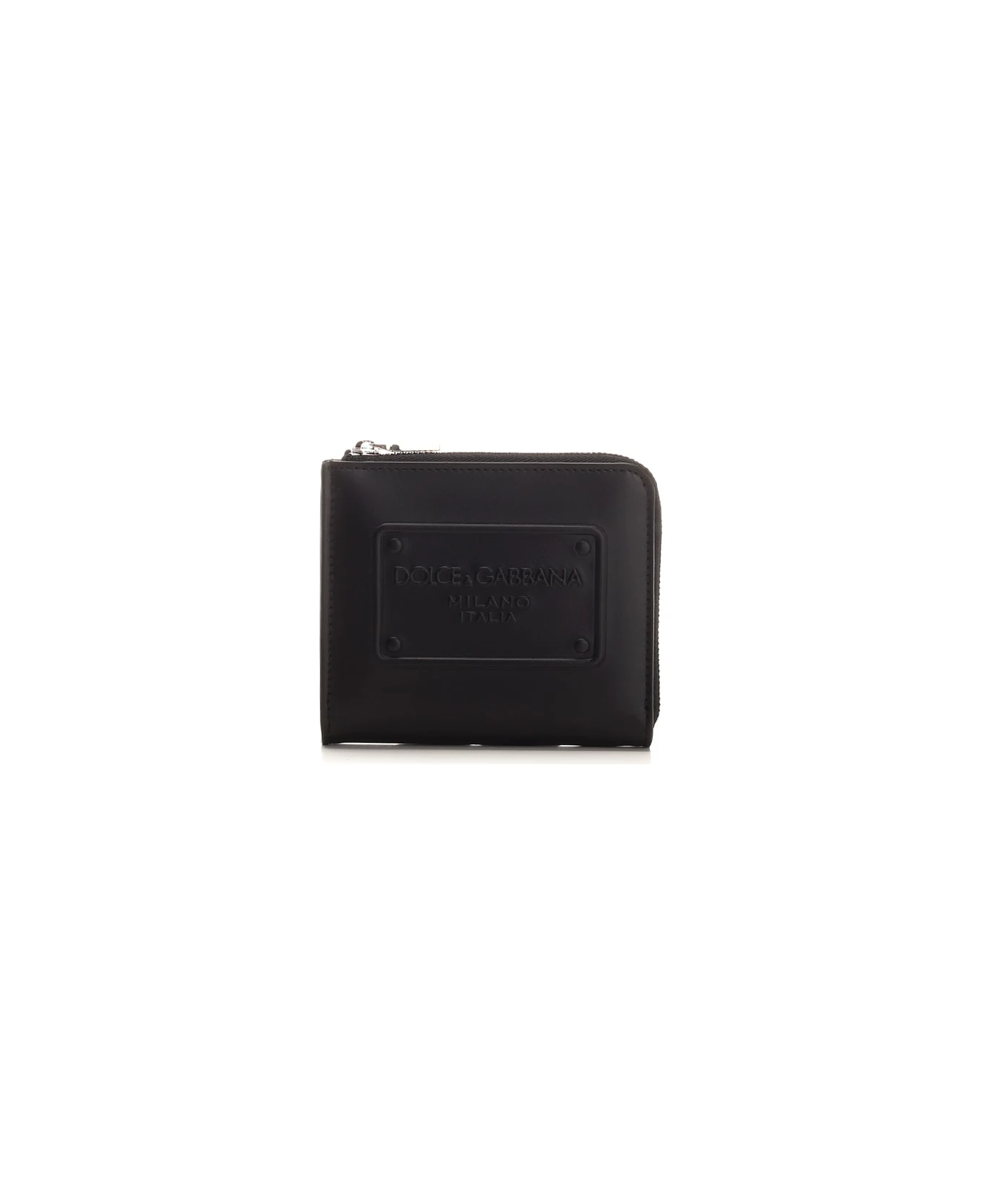 Dolce & Gabbana card holder in black leather with embossed logo and zip closure