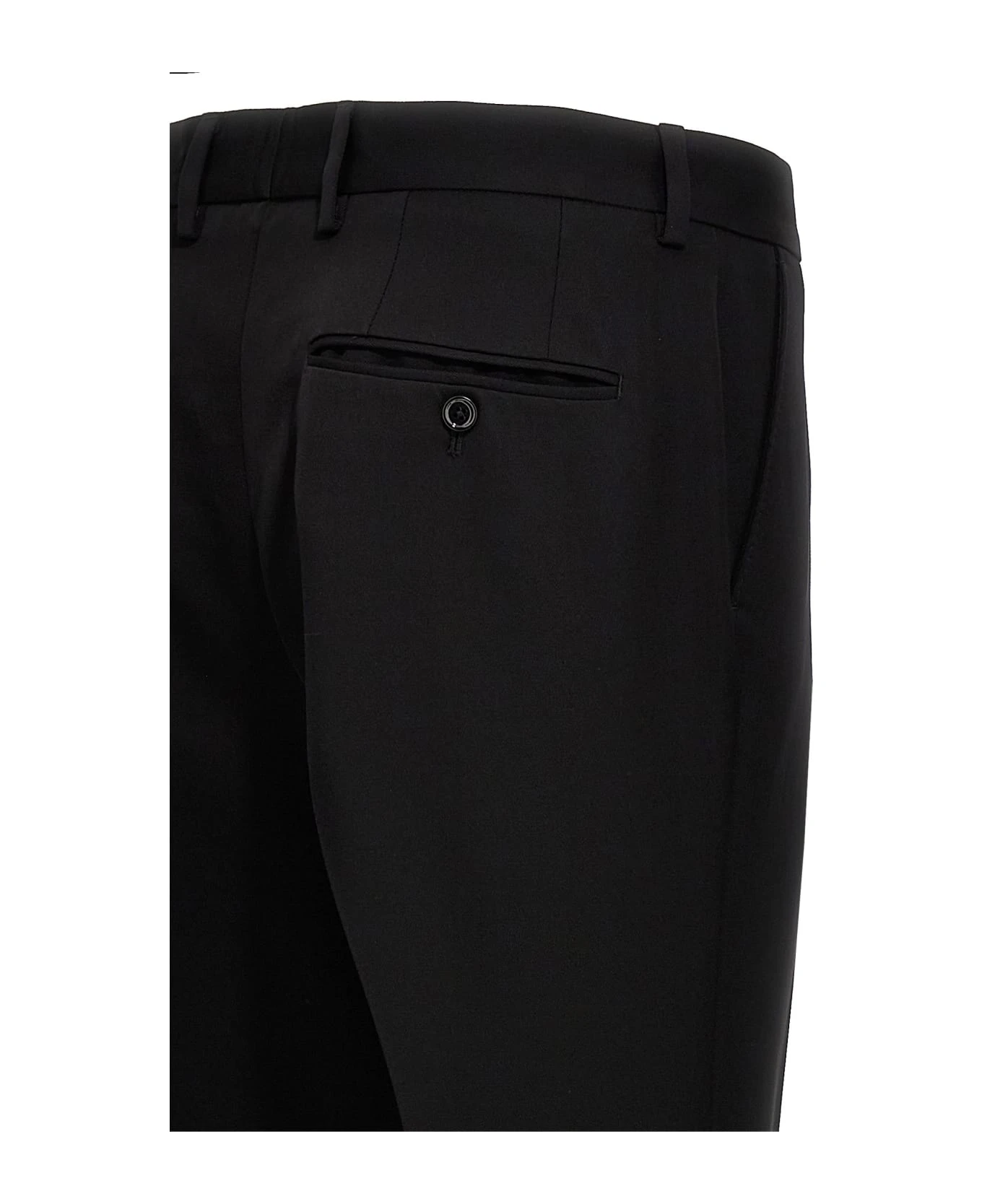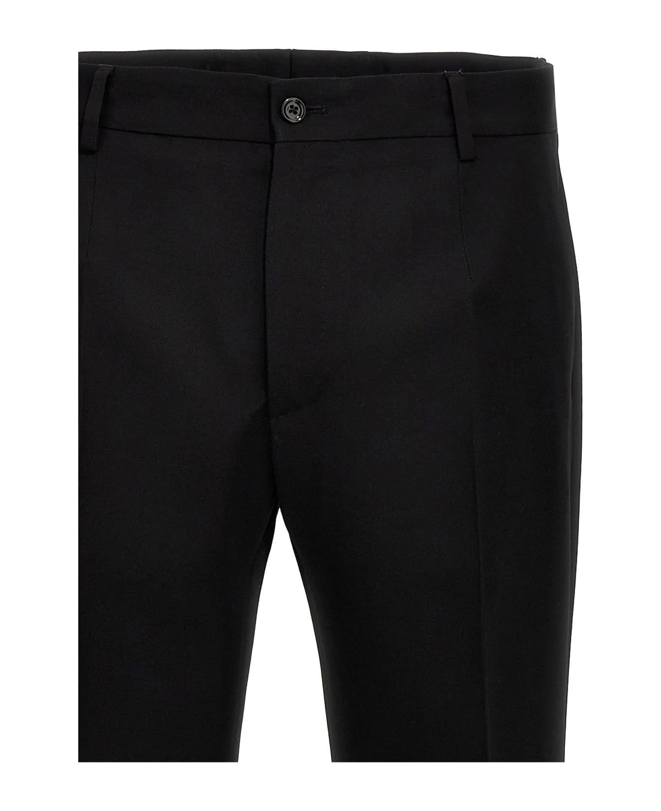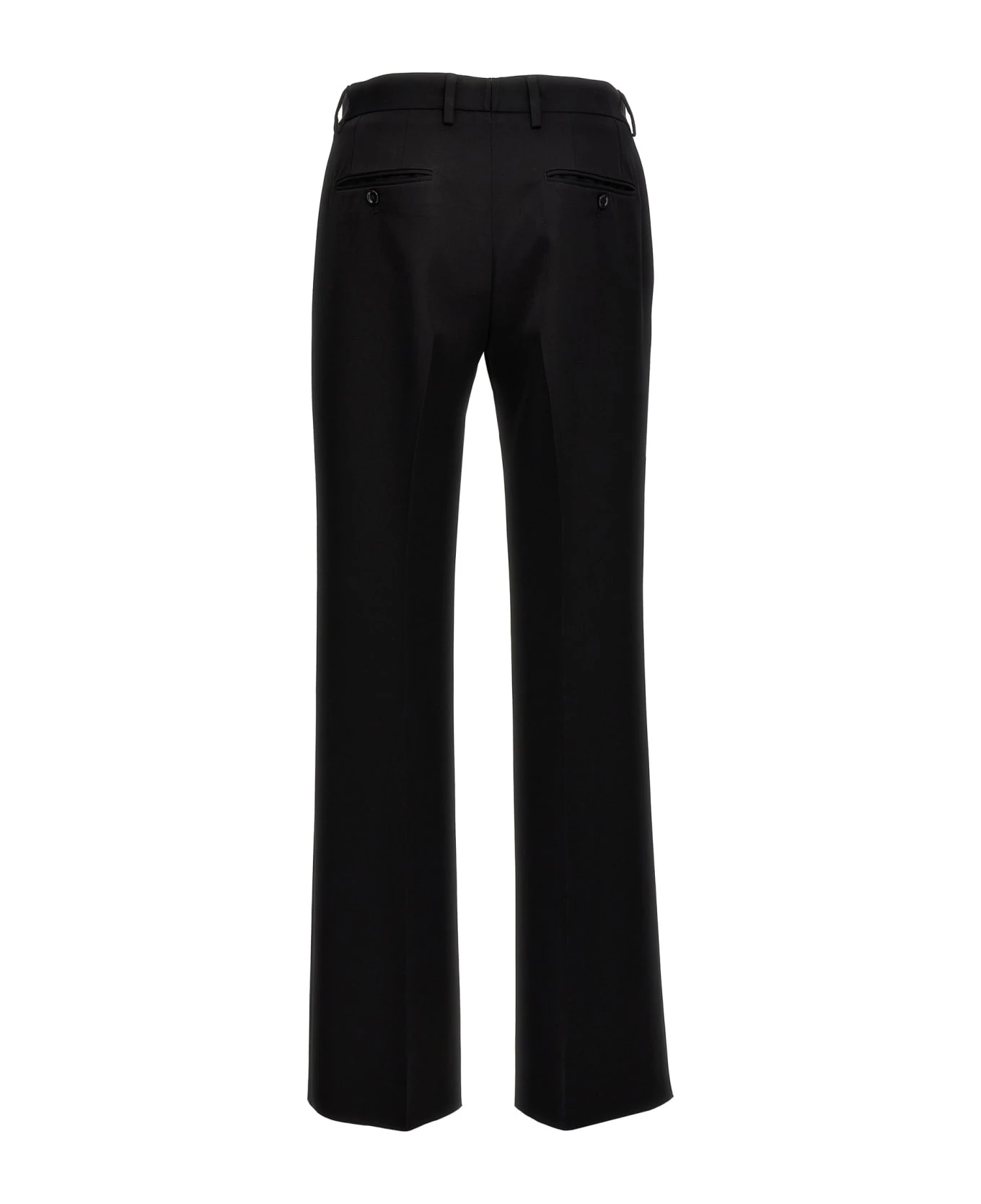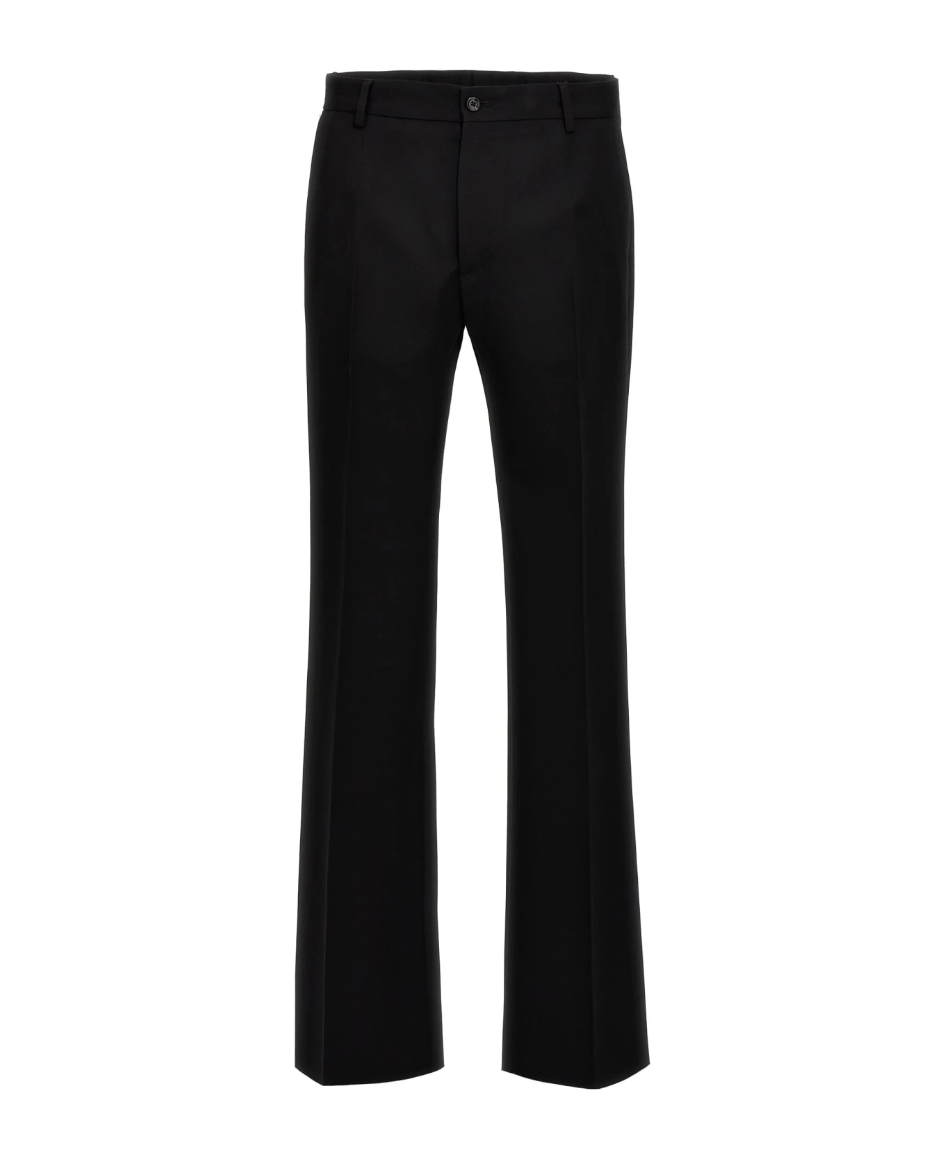 Flare wool pants, zip and button closure, pockets.