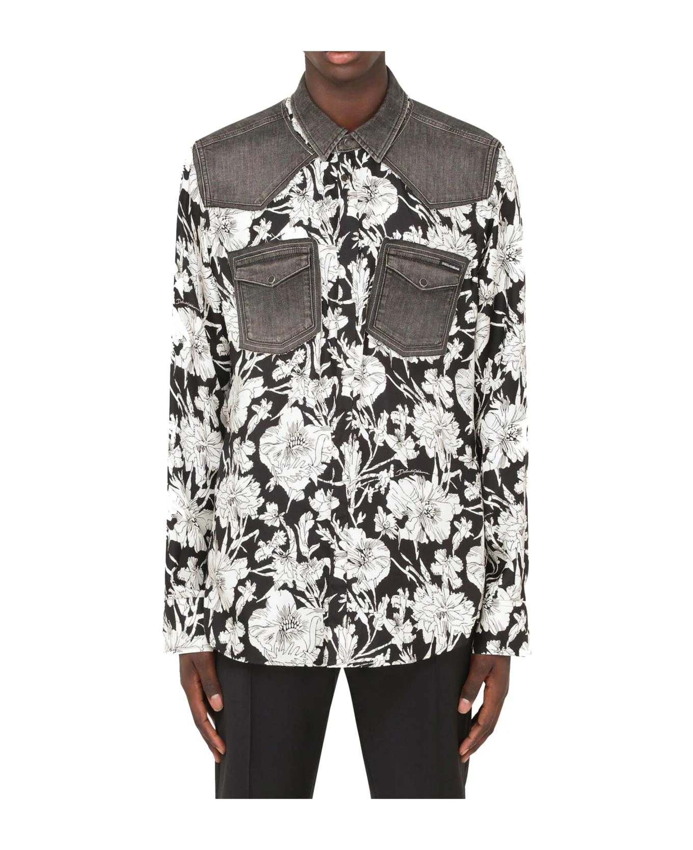 – Composition: 80% Silk 18% Cotton 2% elastane – Denim Details – Long sleeves – Concealed button fastening – Logo patch aplique – Machine wash (delicate)
