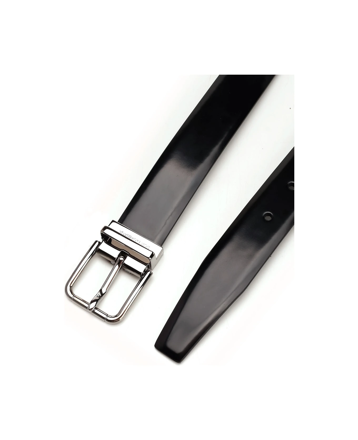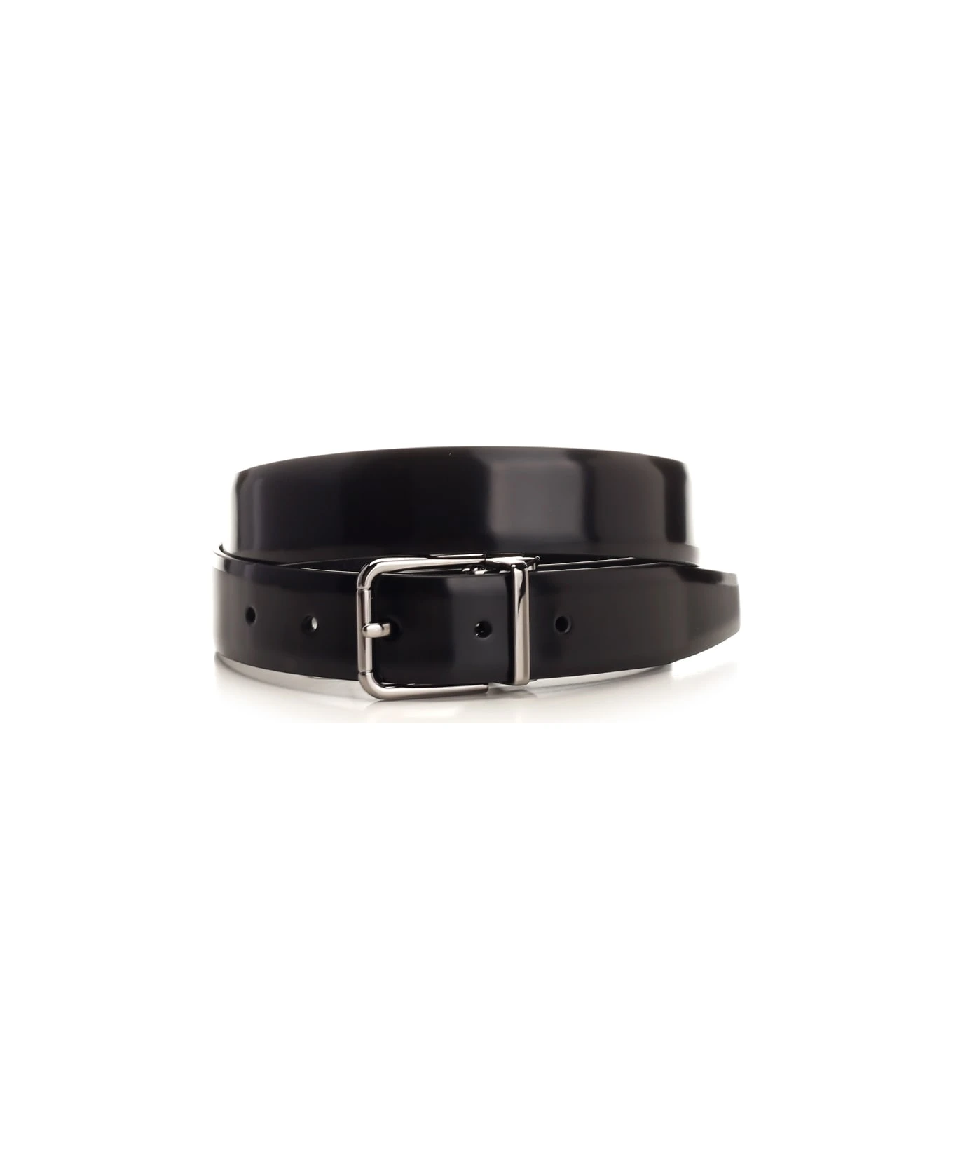 Black belt from Dolce & Gabbana in glossy leather, silver metal buckle.