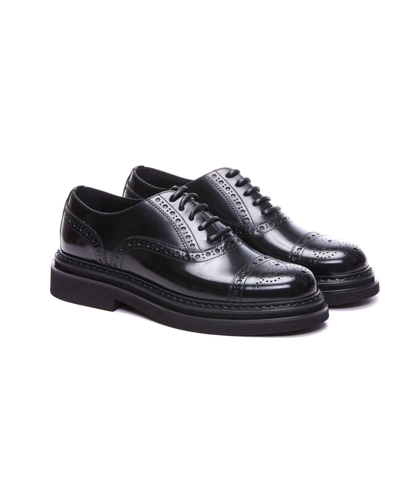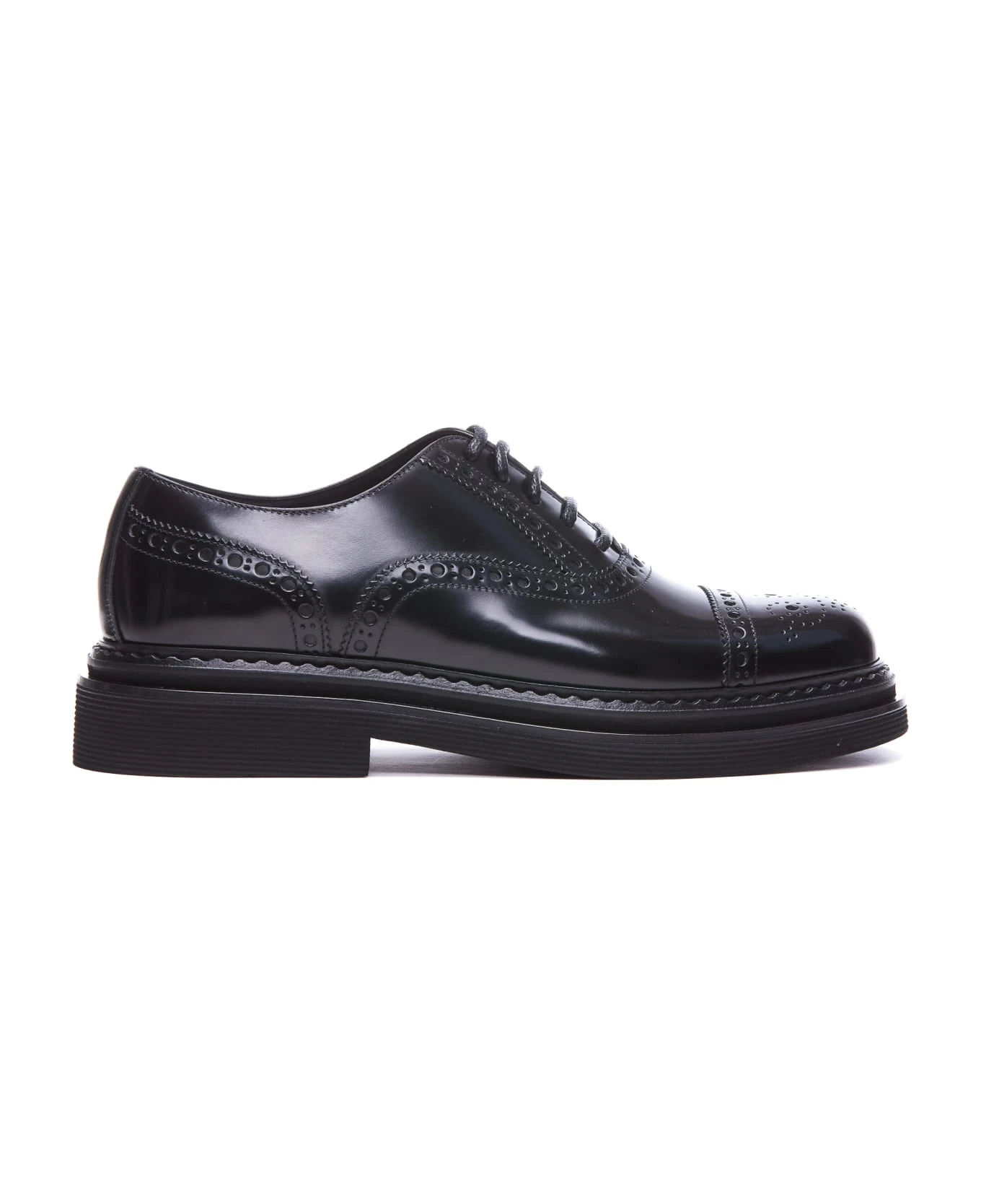 Dolce&Gabbana black Francesina leather lace up shoes, lace closure, leather upper and rubber sole, patent effect