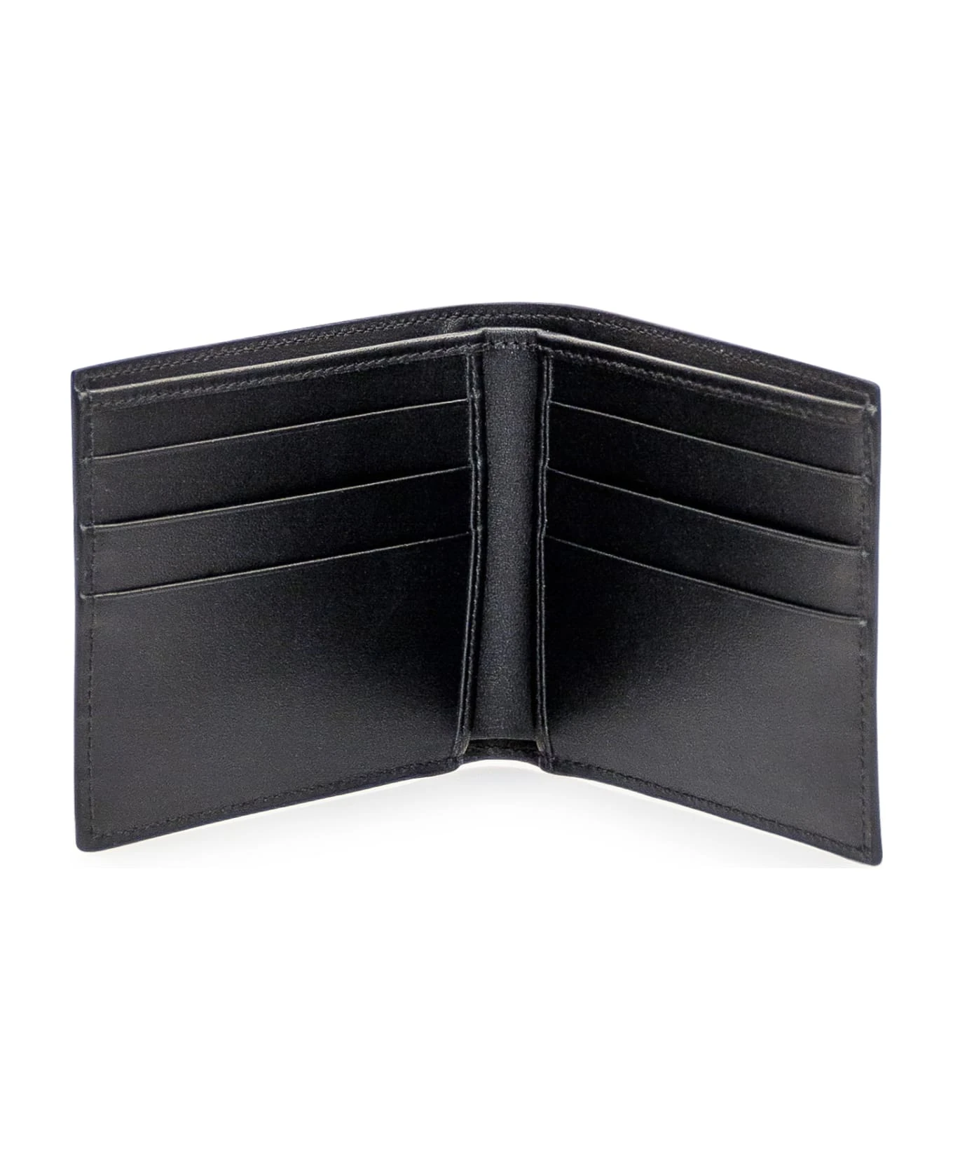 Wallet in black leather. Compartments for cards. Embossed logo on the front.