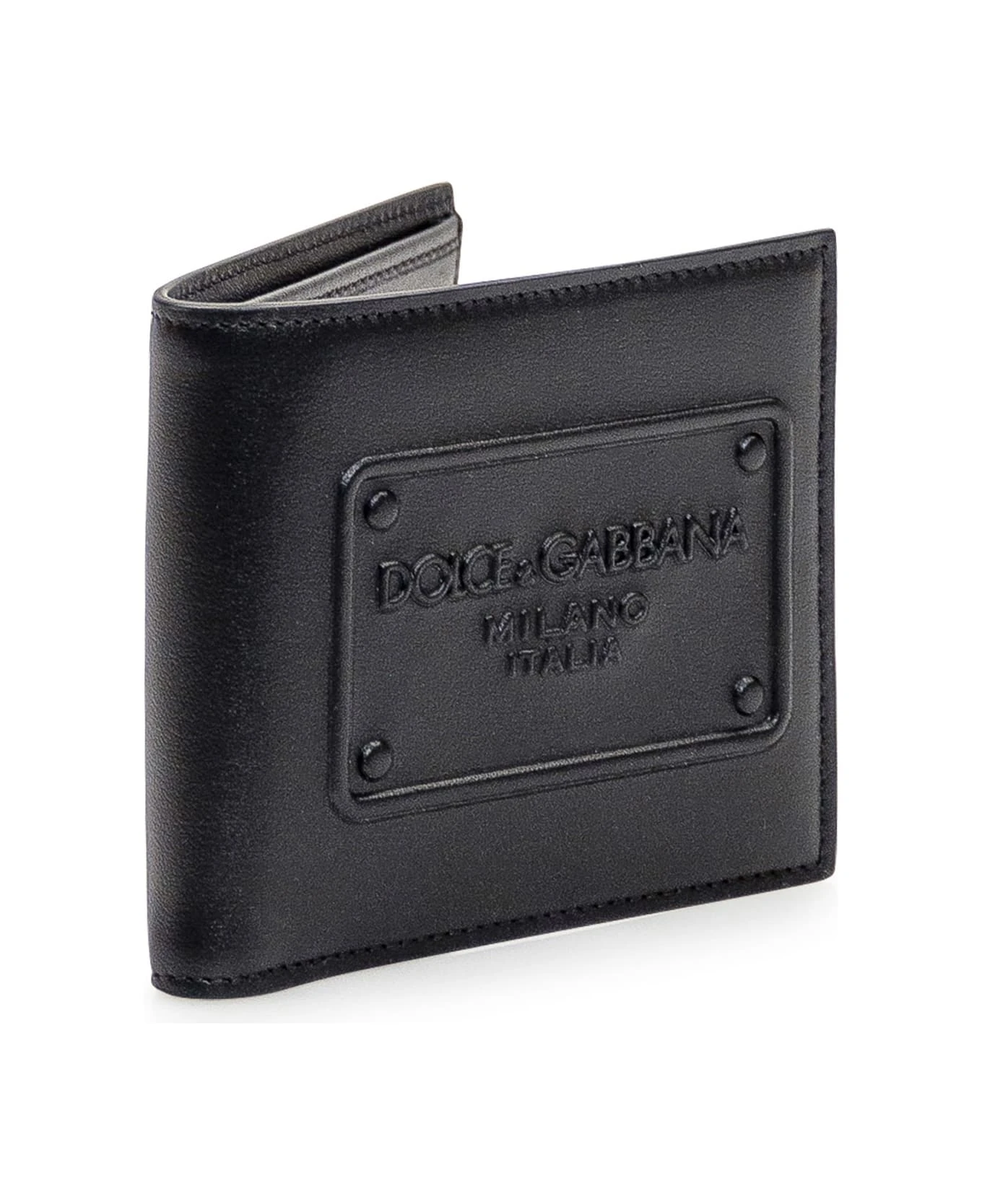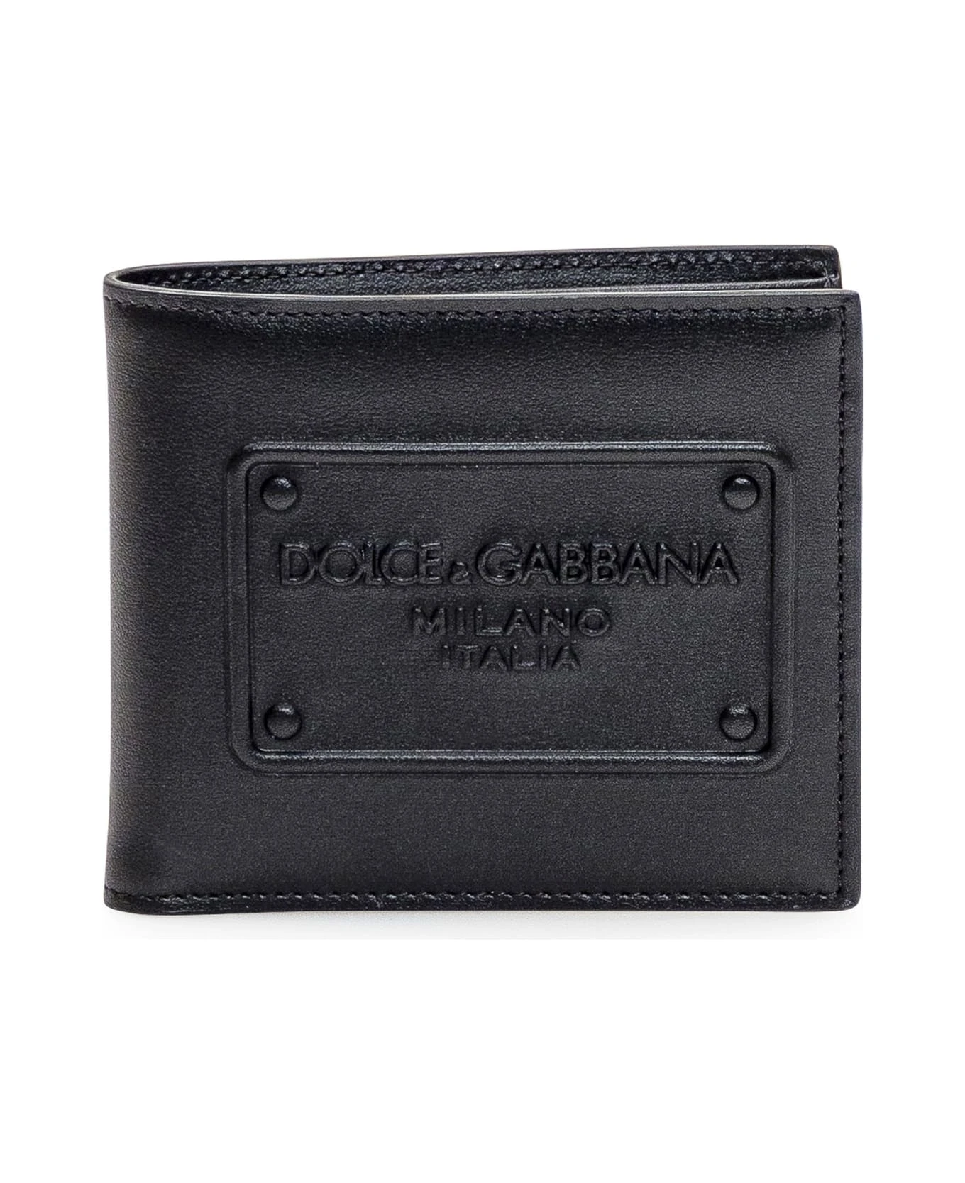 Dolce & Gabbana Black Card-holder With Logo Plaque And Print In Smooth Leather And Waxed Canvas Man