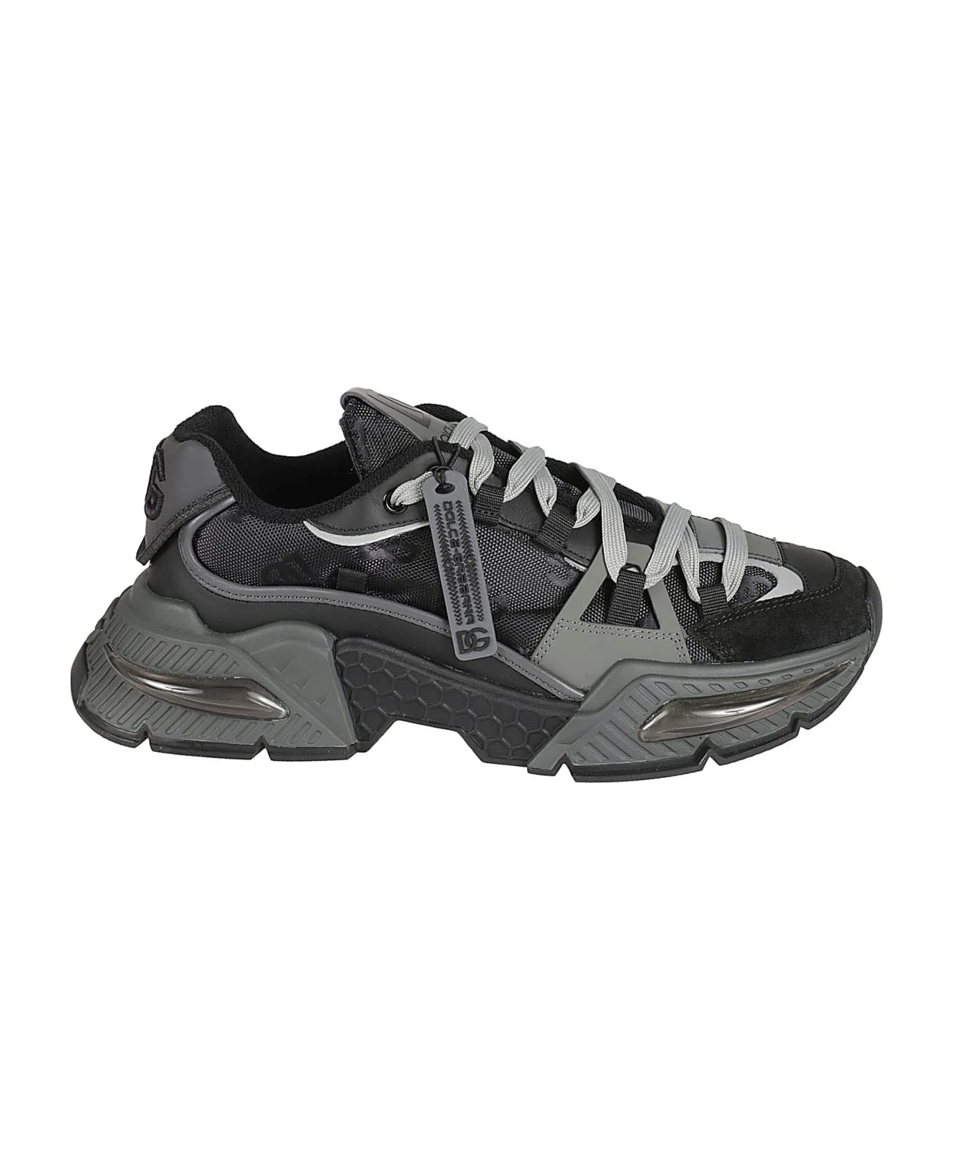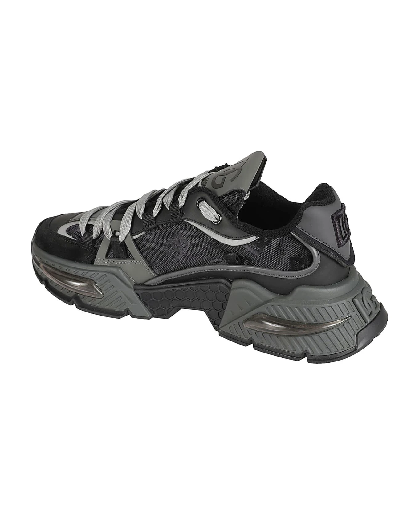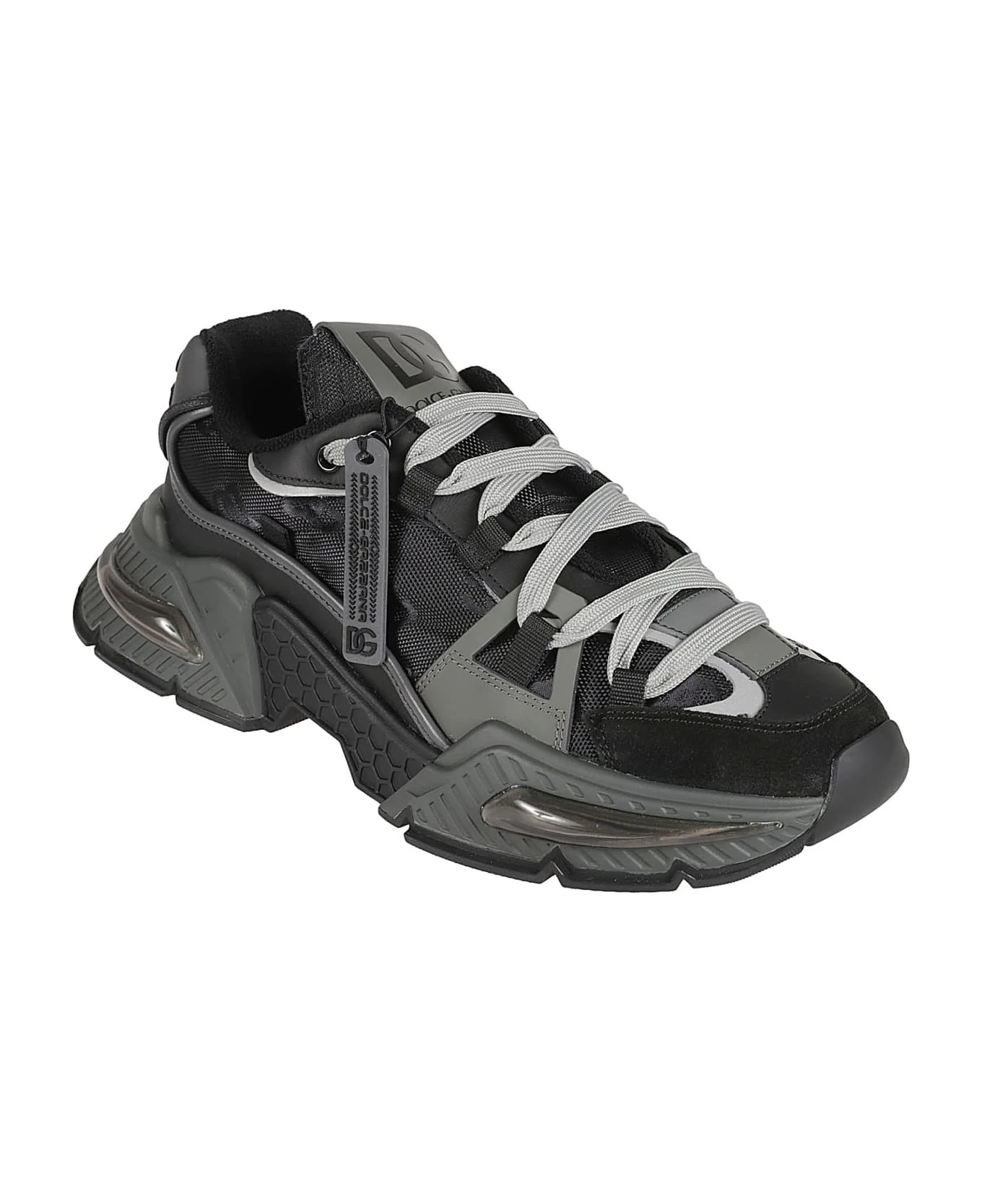 Airmaster chunky sneakers from DOLCE & GABBANA featuring black, panelled design, logo tag, logo patch at the tongue, branded heel counter, front lace-up fastening, round toe and chunky rubber sole.