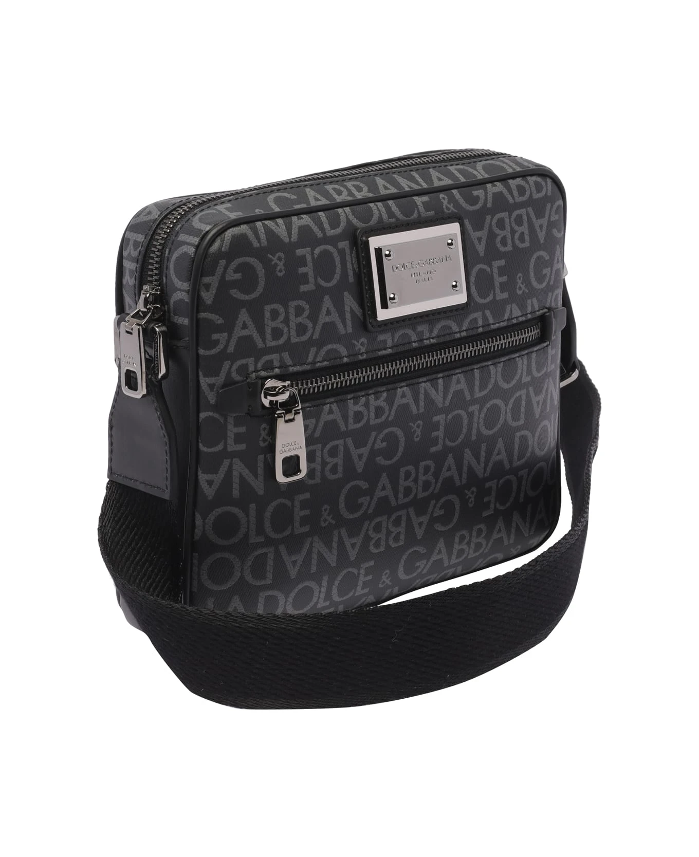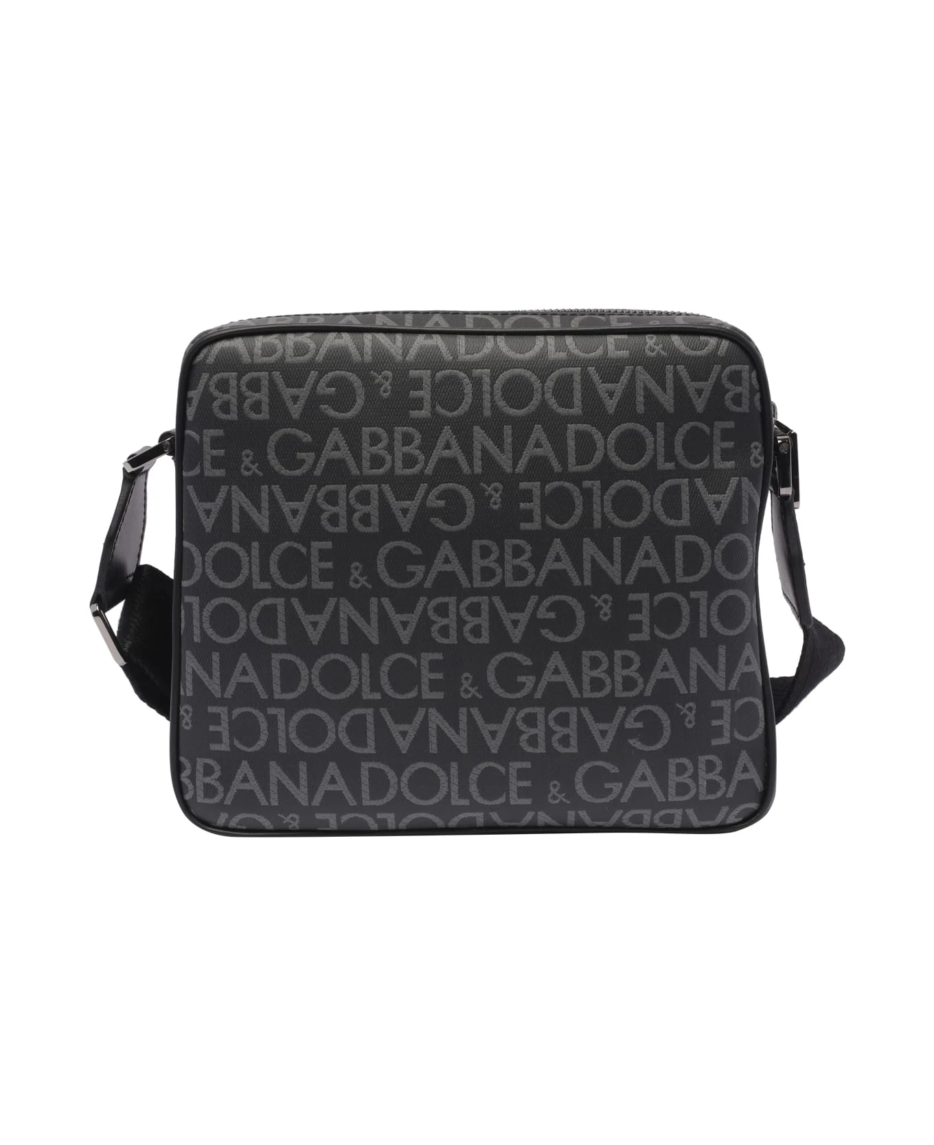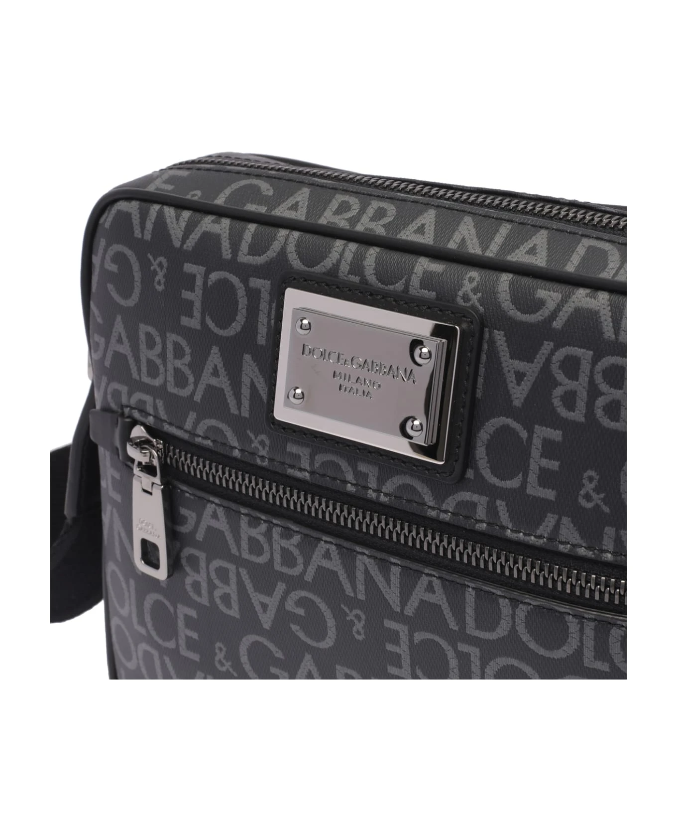 Dolce&Gabbana black and silver messenger, zip closure, all over print logo, inner open pocket, external zip pocket, adjustable shoulder strap