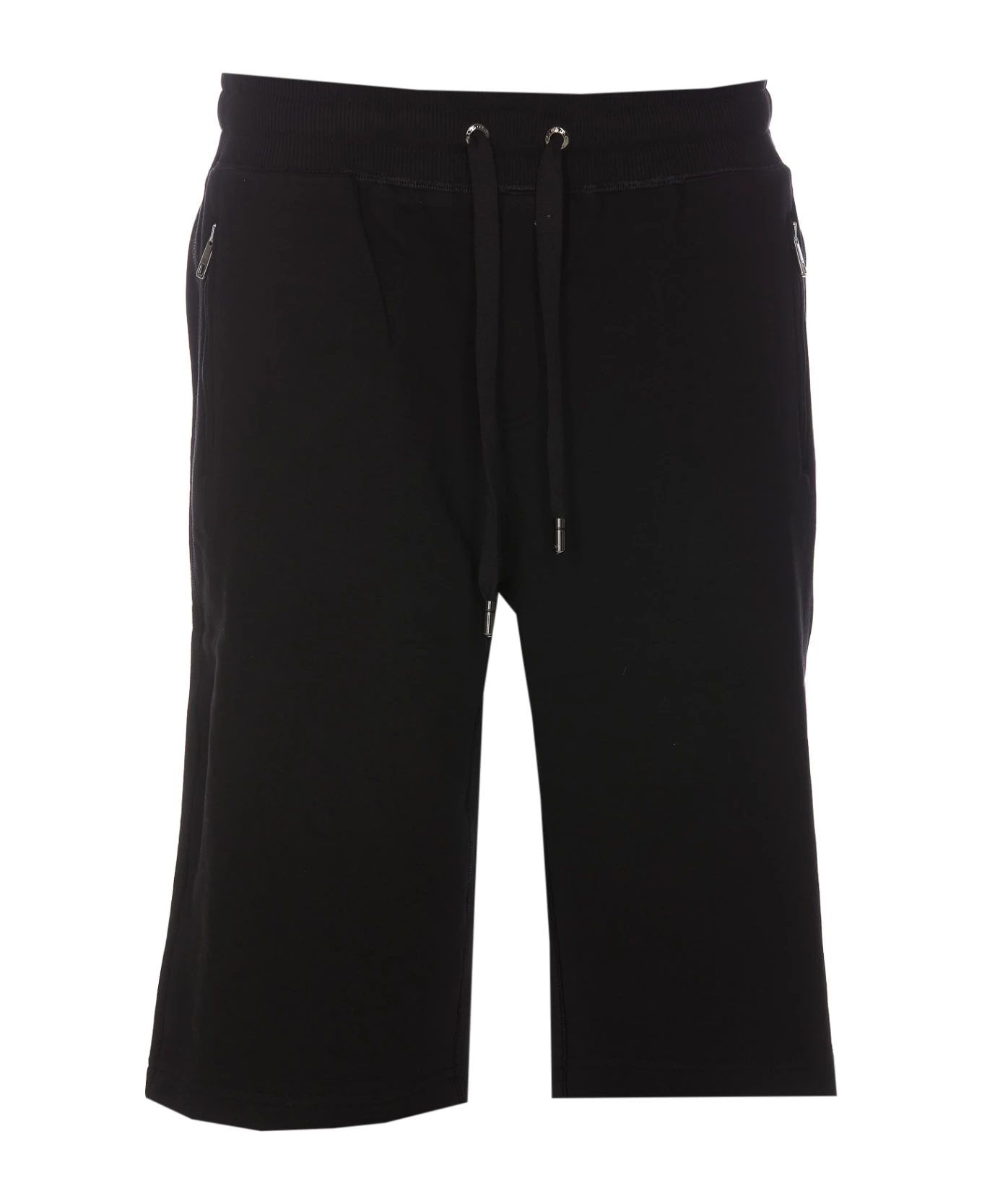 Dolce&Gabbana balck shorts, coulisse closure, lateral zip pockets, patch logo on the back,