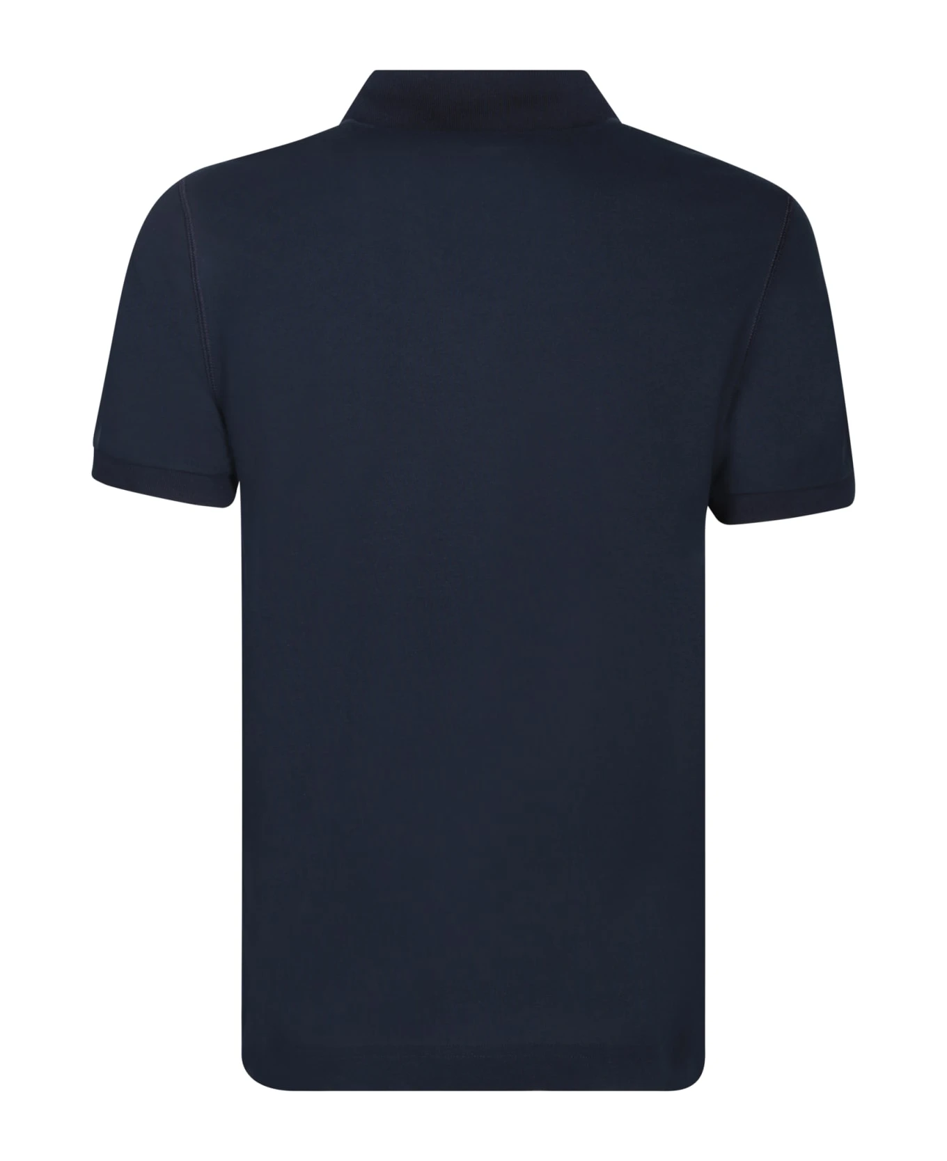 Polo collar. Short sleeves. Logo plaque. Front button fastening. Straight hem. Color: dark blue