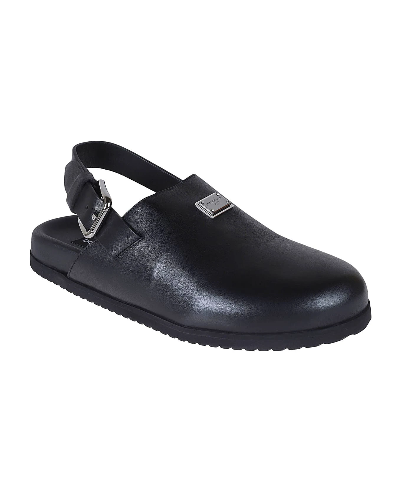 Logo Plaque Sling-back Flat Sandals from Dolce & Gabbana