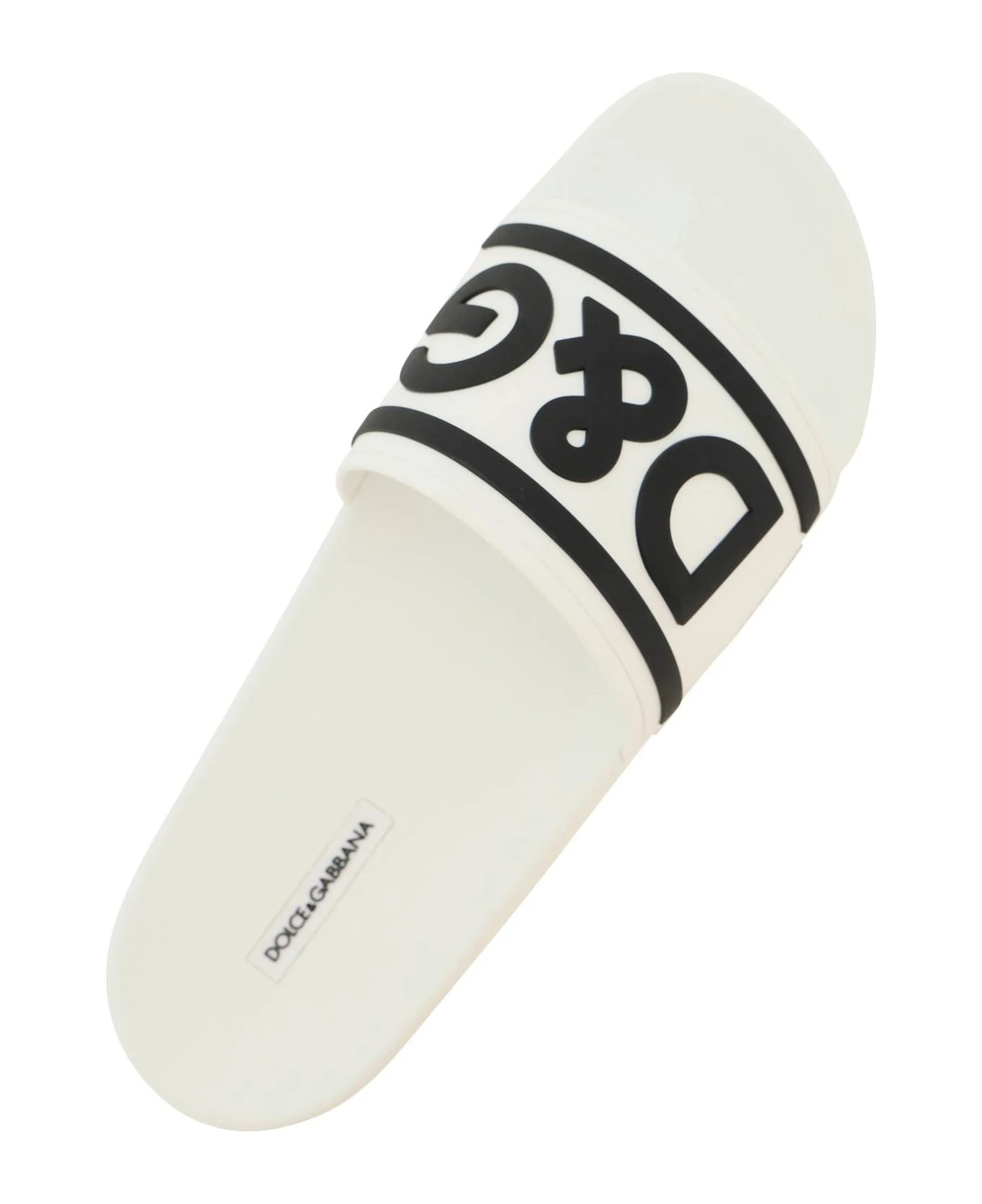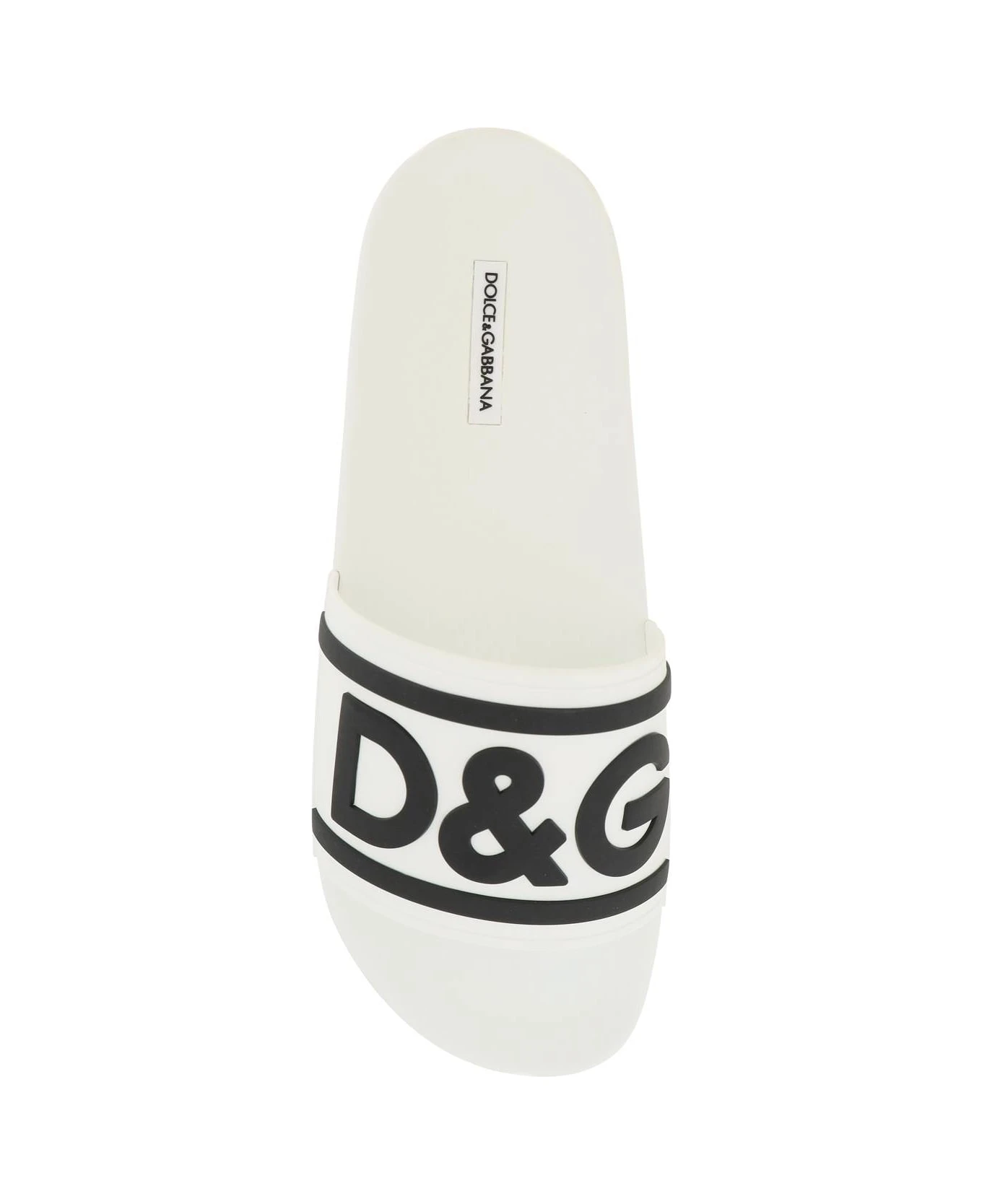 Dolce & Gabbana rubber slides with contrasting and embossed D&G logo on the band. Rubber anatomical footbed and sole.