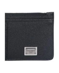 Dolce & Gabbana Black Card-holder With Logo Plaque And Print In Smooth Leather And Waxed Canvas Man
