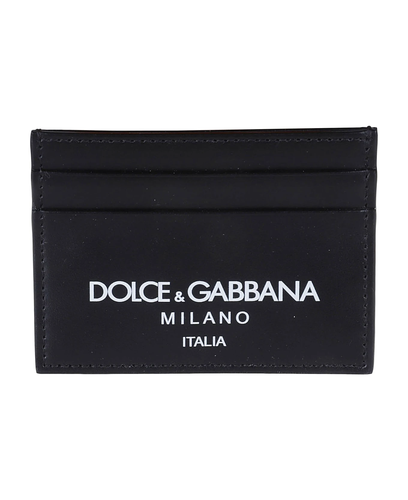 Dolce & Gabbana Black Card-holder With Logo Plaque And Print In Smooth Leather And Waxed Canvas Man