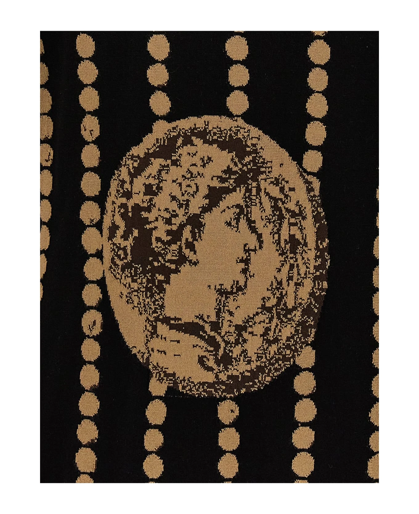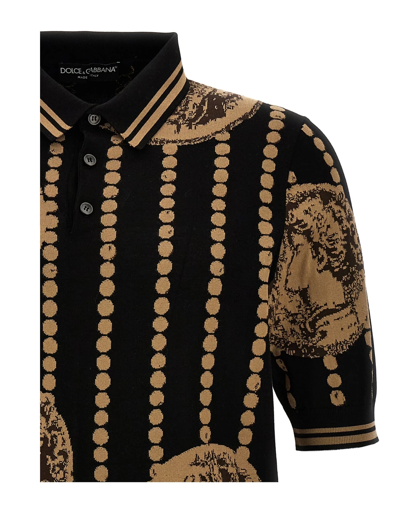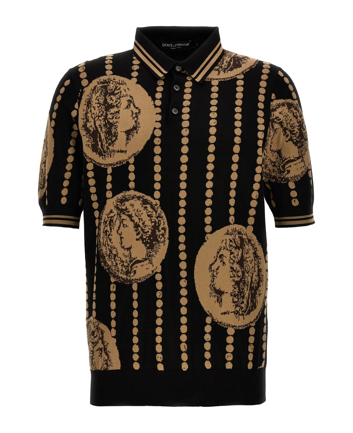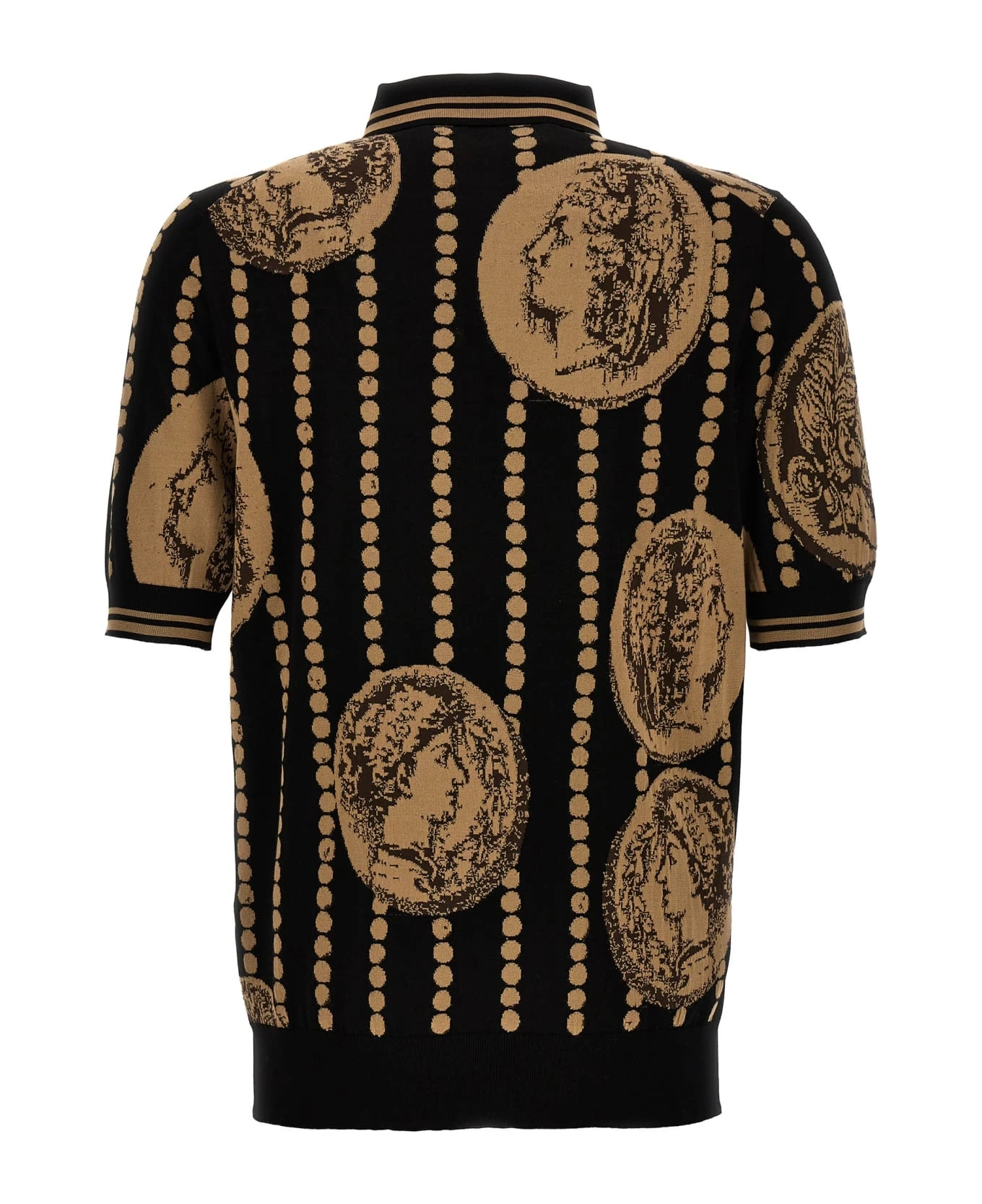 Knit polo shirt with ‘Moneta’ jacquard pattern and short sleeves.