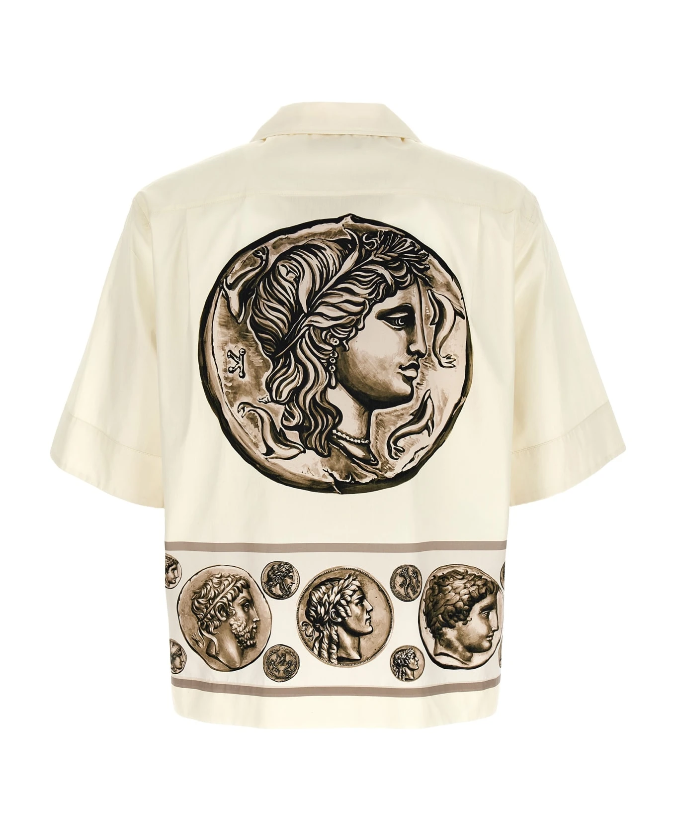 Cotton shirt with ‘Coins’ print, front pocket, a button closure and short sleeves.