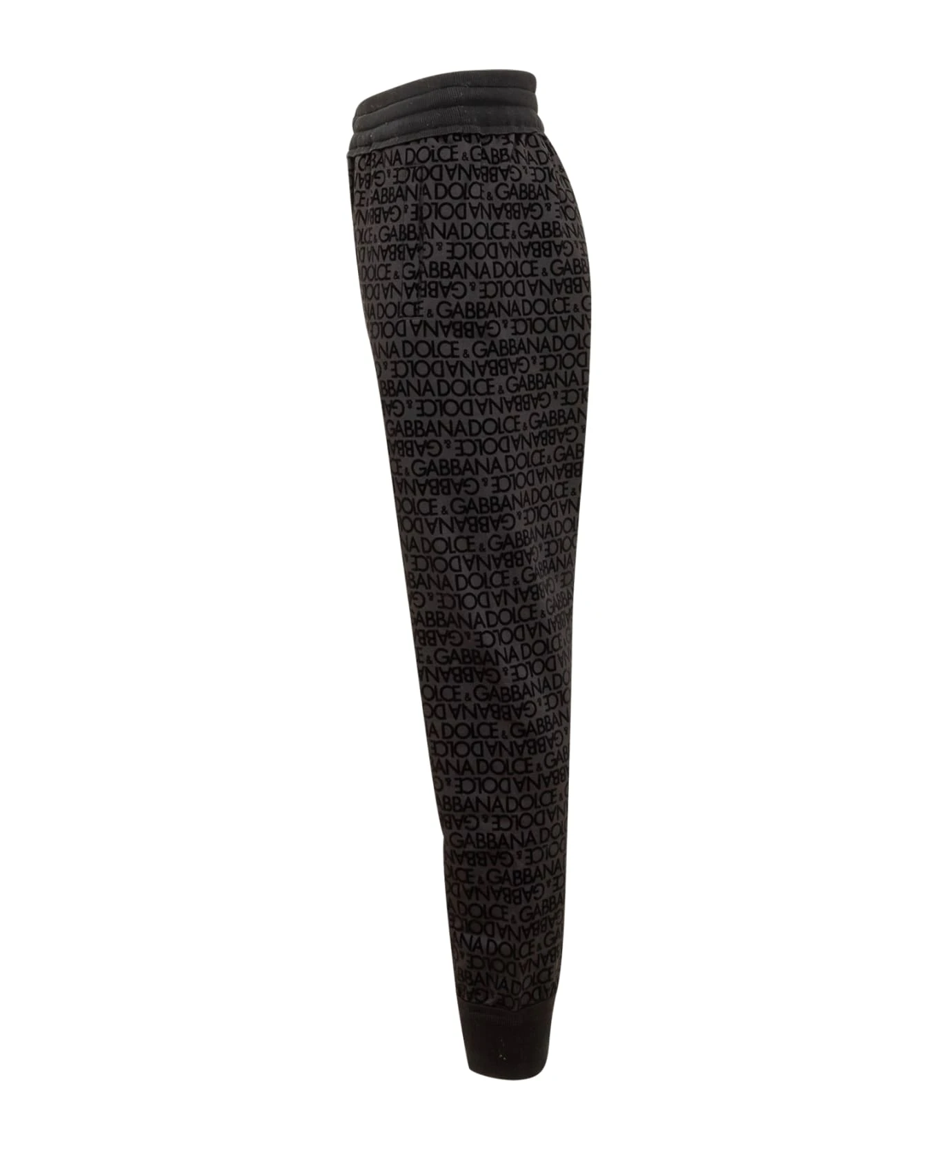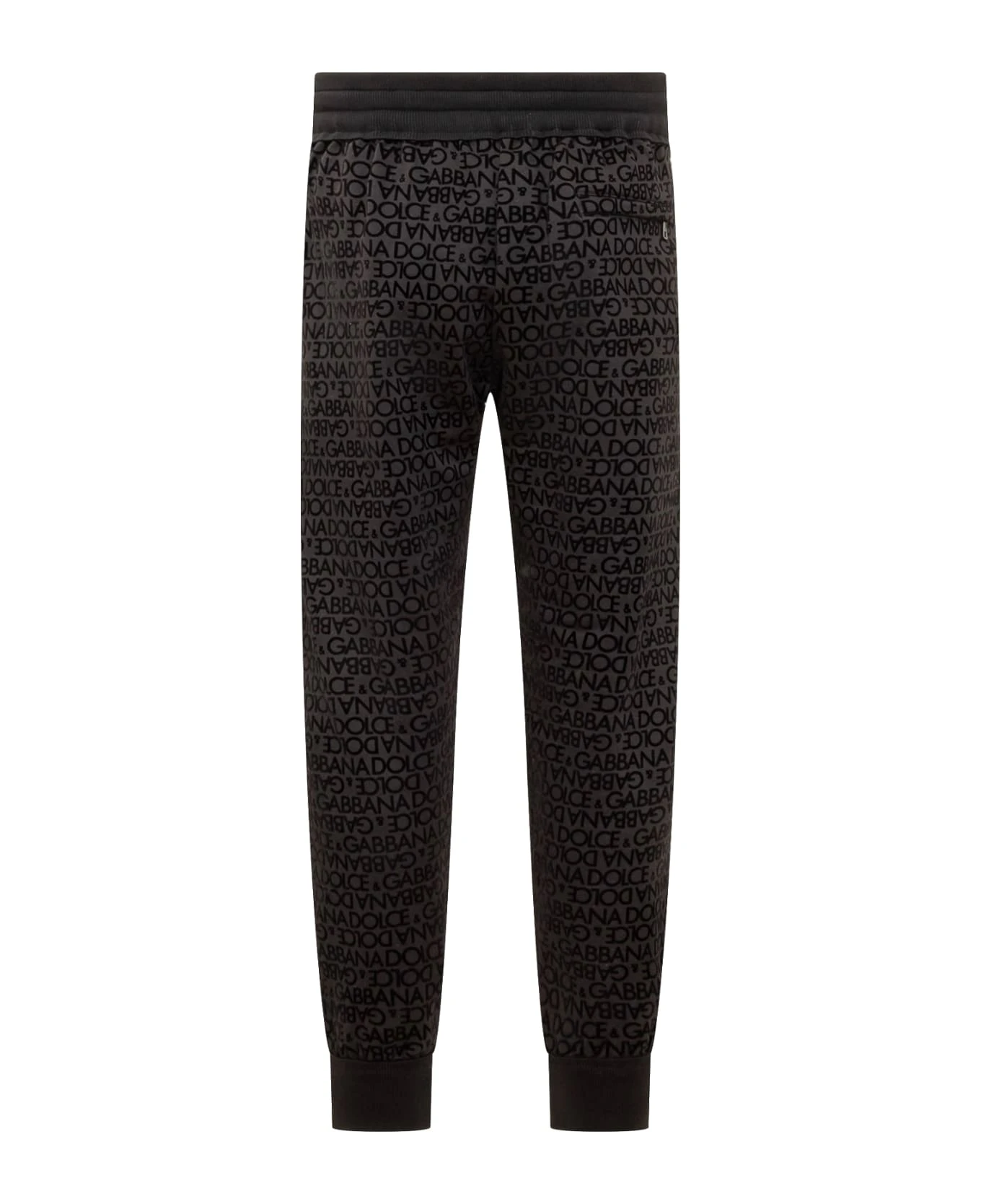 Black long pants. Elastic and drawstring waist. All over printed logo. Back pockets.