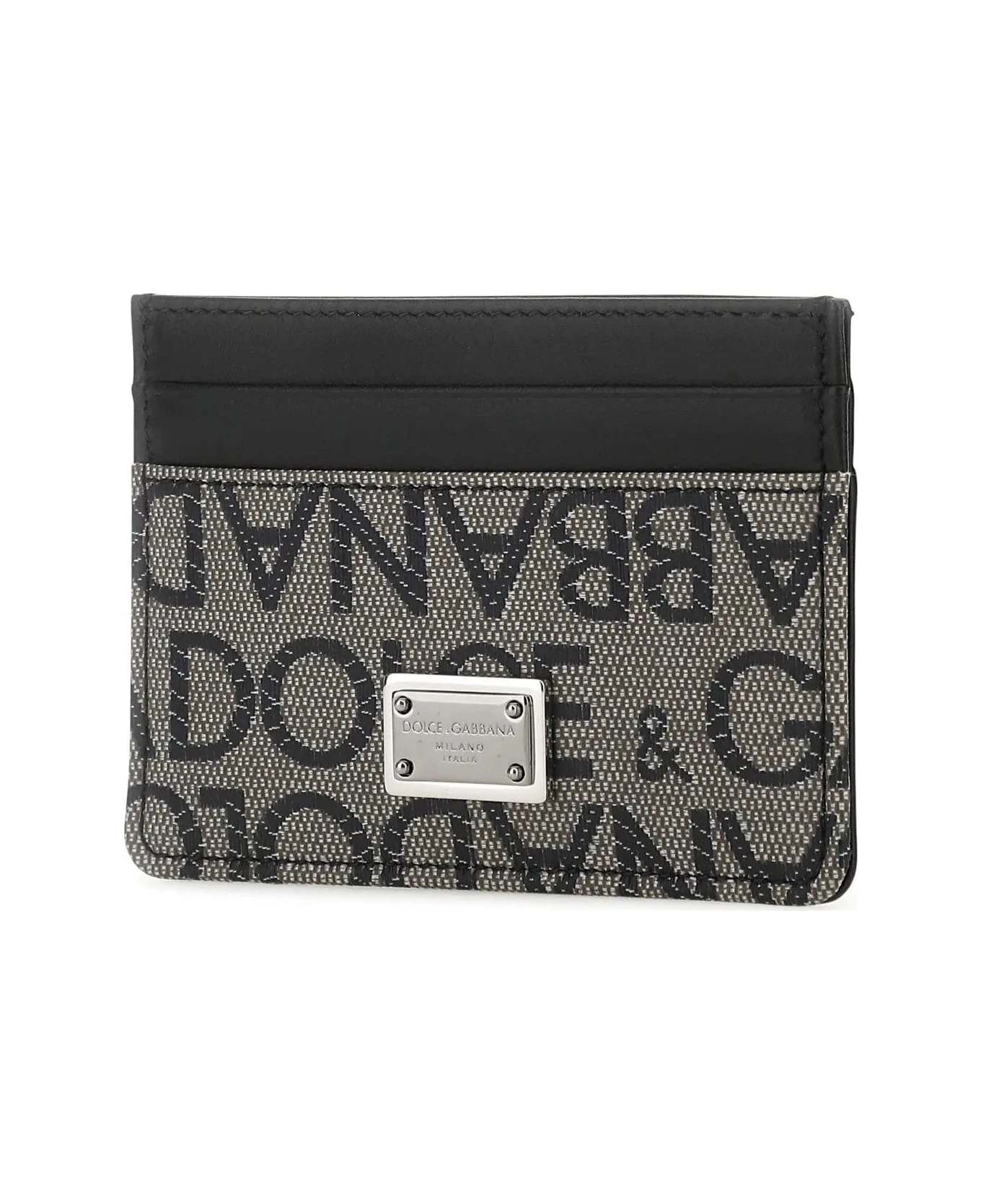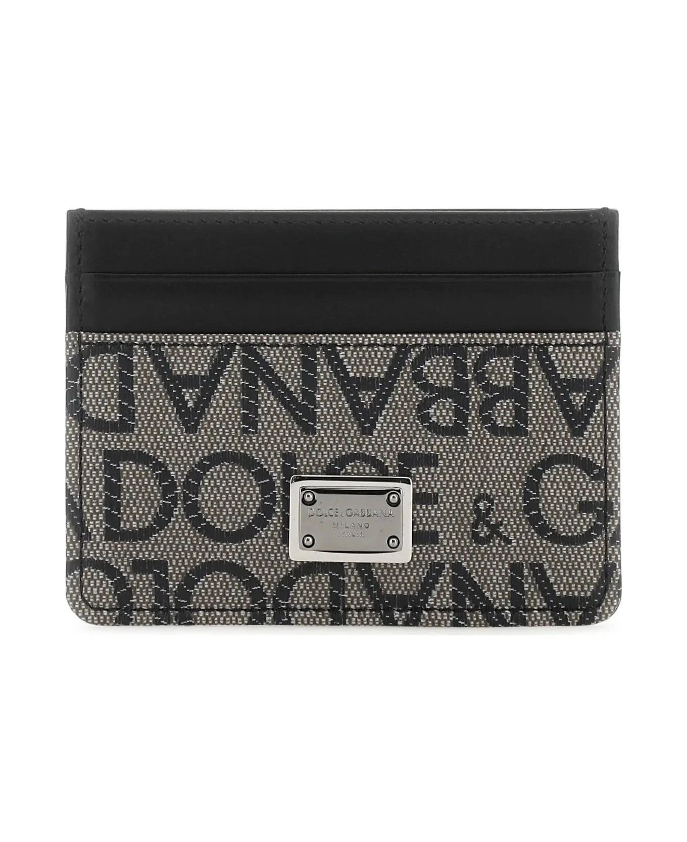 Card holder realized in slightly pebble calf leather with coated embroidered fabric insert enriched by logoed plate at the front.