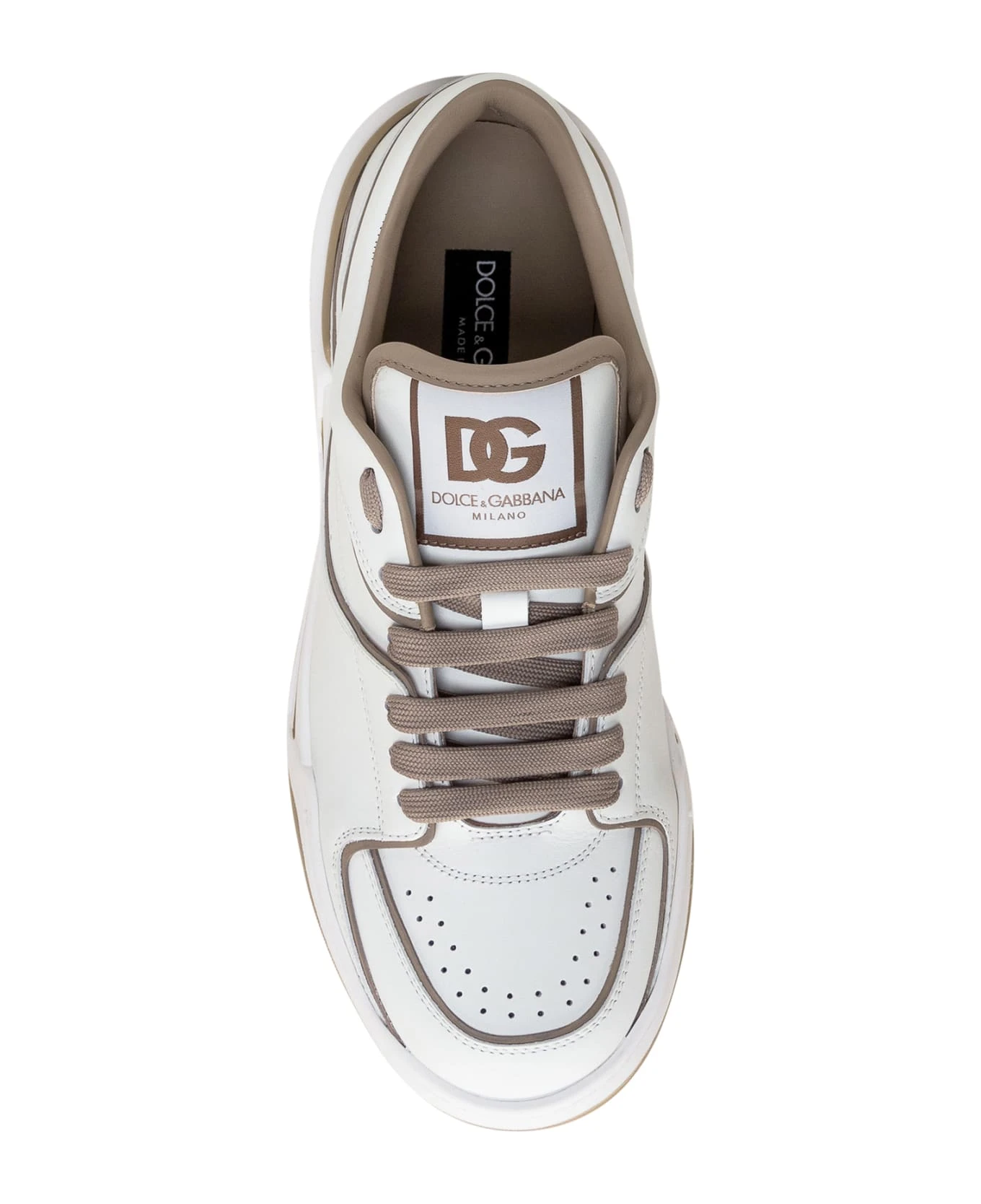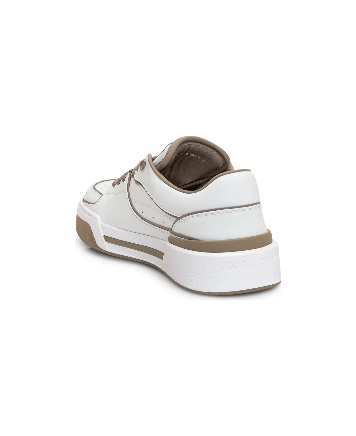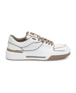 Low white sneaker. Lace-up closure. Perforated tip. Logo on the tongue and heel.