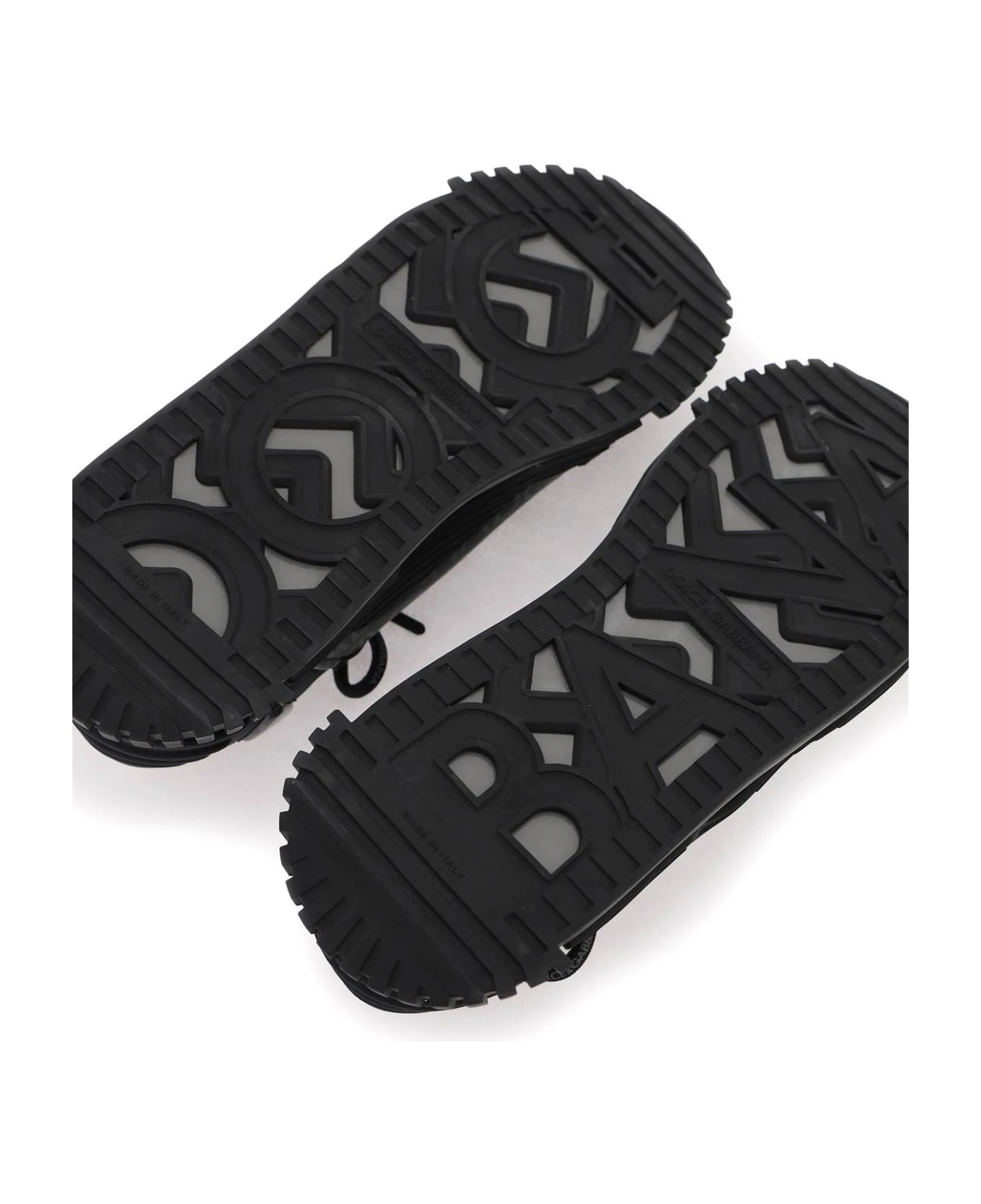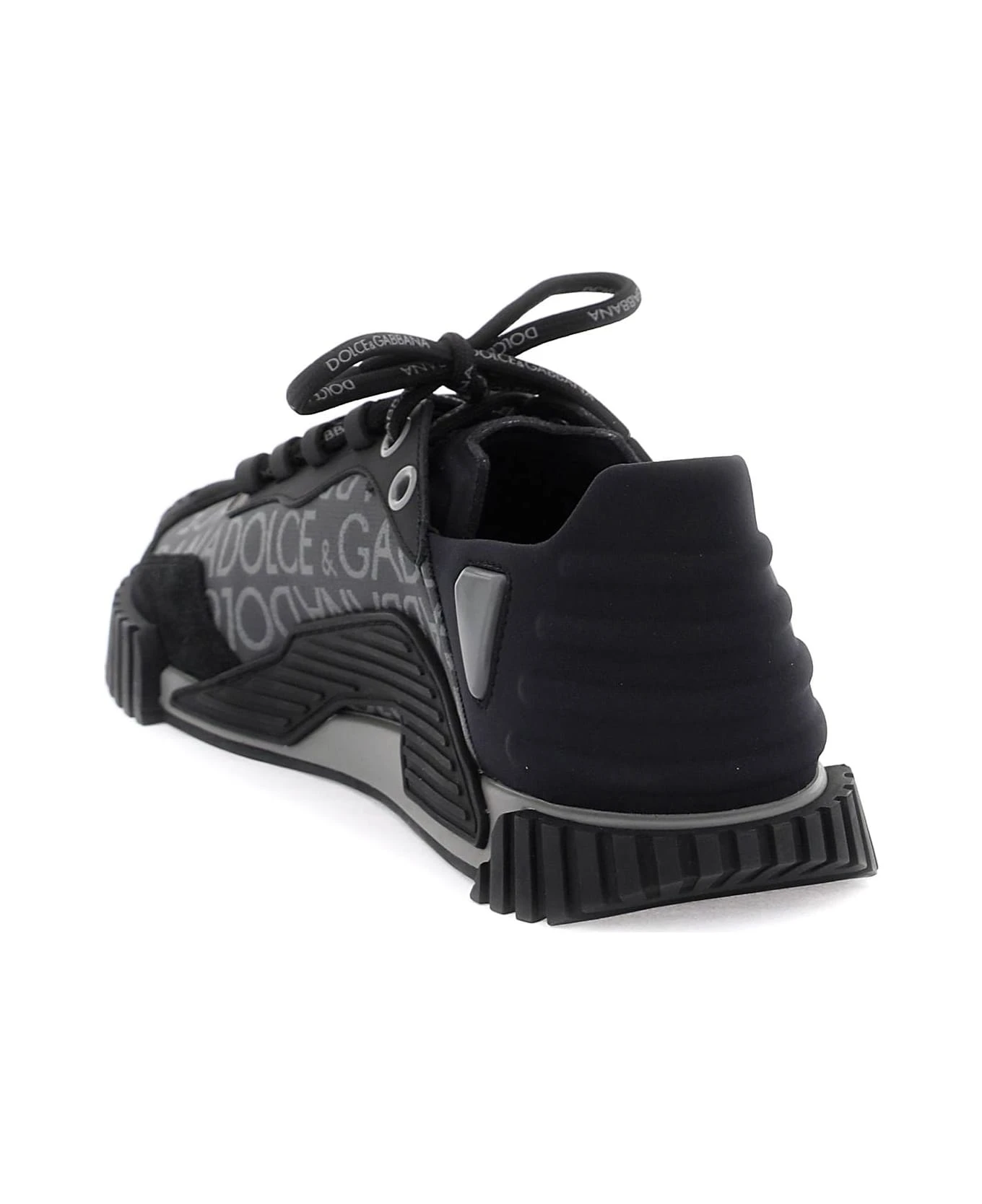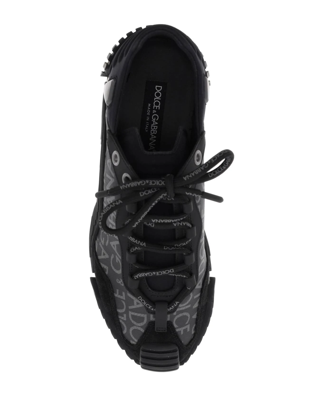 NS1 sneakers by Dolce & Gabbana made of coated fabric characterized by jacquard all-over lettering logo, rubber, suede and technical fabric inserts. Logoed tubular laces, fabric lining with removable leather insole, rubber sole with embossed logo.