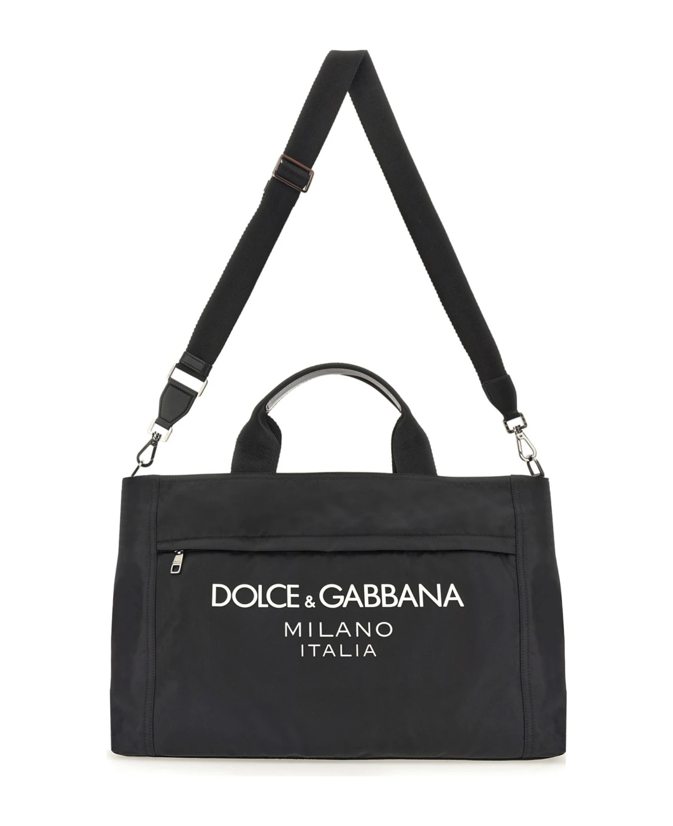 – Adjustable And Removable Shoulder Strap- Double Top Handle- Contrasting Front Logo- Front Flat Pocket With Zipper- Lined Interior With Pockets- Forgotten: H 33 Cm X W 50 Cm X D 20 Cm- 50% Polyamide, 20% Acrylic, 15% Leather, 15% Viscose- Made In Italy