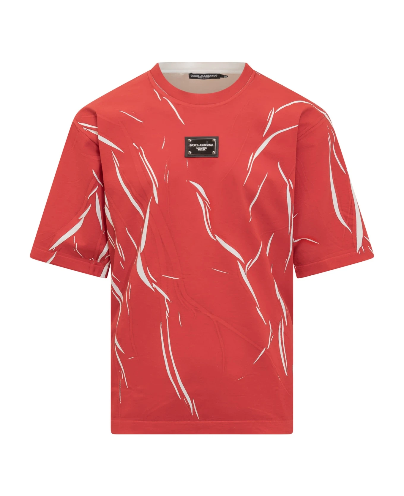 Short-sleeved T-shirt. Crew neck. Overdyed effect with all-over scratches. Logo plaque on the front.