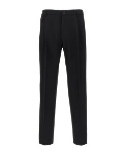 Wool pants, front pleat and front pleat, zip and button closure, elastic waistband, pockets.