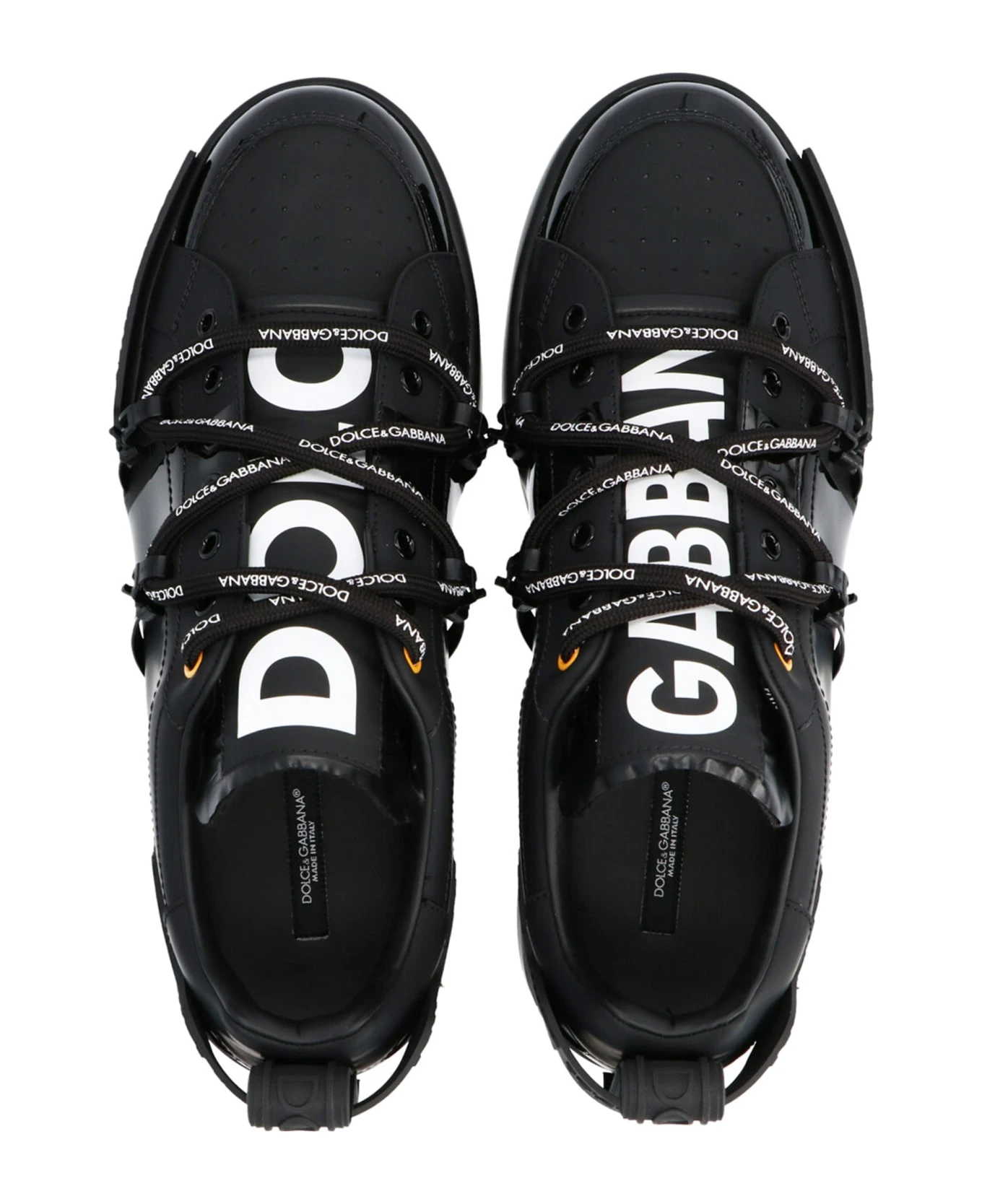 ‘Portofino’ sneakers in leather and technical fabric, tongue with printed logo, laces, rubber sole.