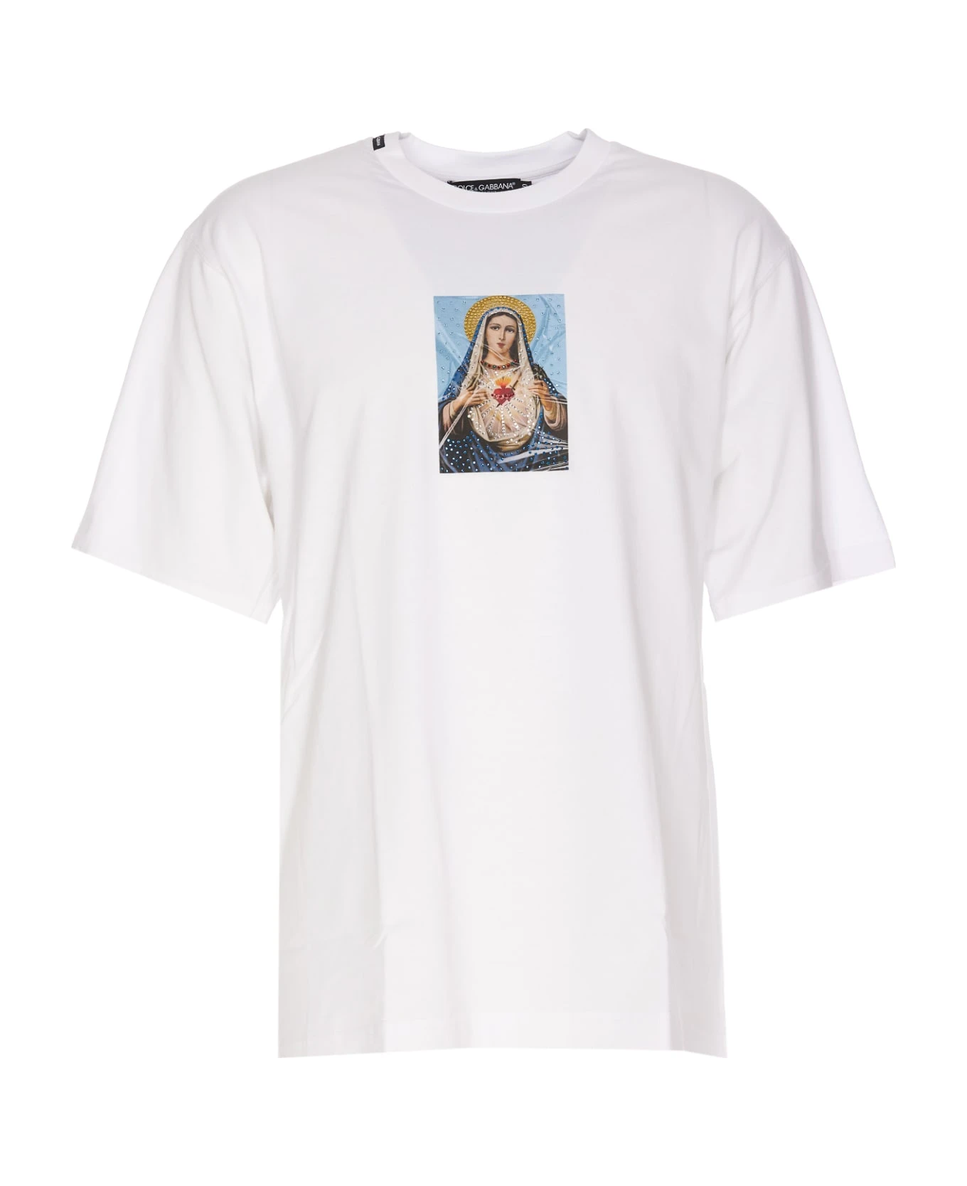 Dolce&Gabbana white t-shirt, crewneck, frontal print with strass details