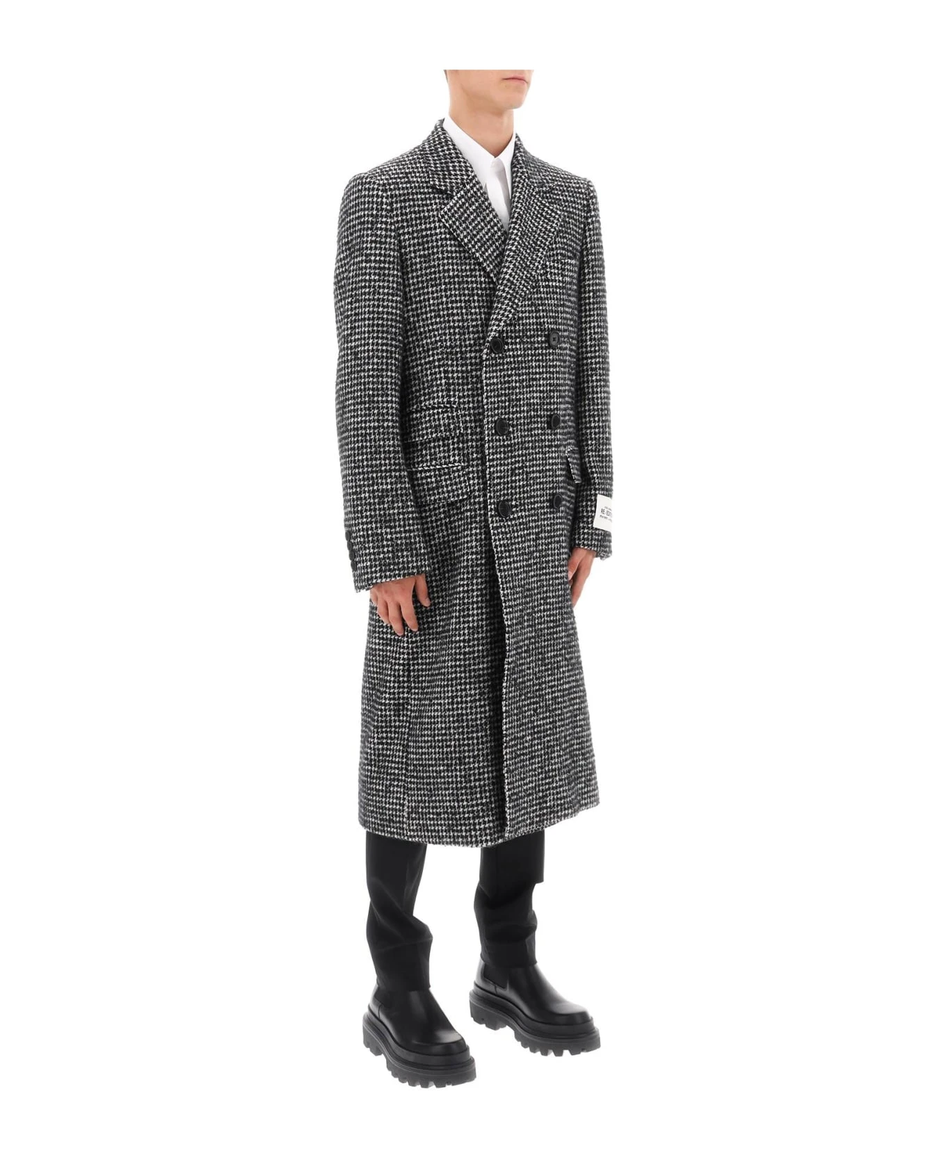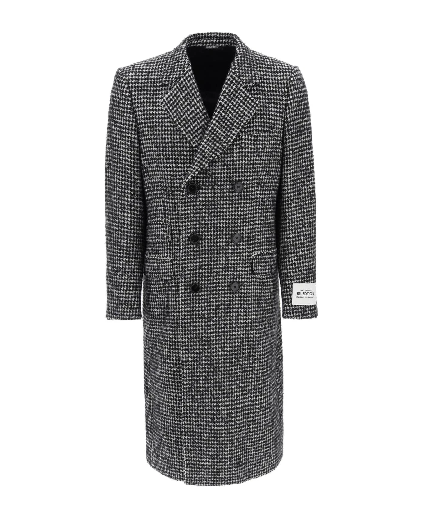 Coat from the Re-Edition collection by Dolce&Gabbana made from wool blend with houndstooth motif and double-breasted design with button closure. It features notch lapel, a welt pocket at chest, jetted pockets with flap, ticket pocket and deep center-back vent. Branded with Re-Edition label on the left cuff. Lined in silk and equipped with internal pockets. Regular fit with straight cut and calf length. The model is 187 cm tall and wears size IT 50.