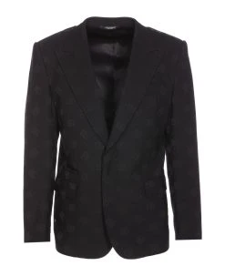 Dolce&Gabbana black Sicilia DG jacket with frontal buttons closure, all over DG logo tone on tone, long sleeves, buttons on cuffs, reverse detail on the front