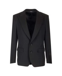 Single-breasted ‘Sicilia’ jacket from Dolce & Gabbana in wool faille, internal lining, slim fit, peak lapels, front closure with double button, external pockets with flap and breast pocket, internal welt pockets with button, sleeve bottom with button, vent central.