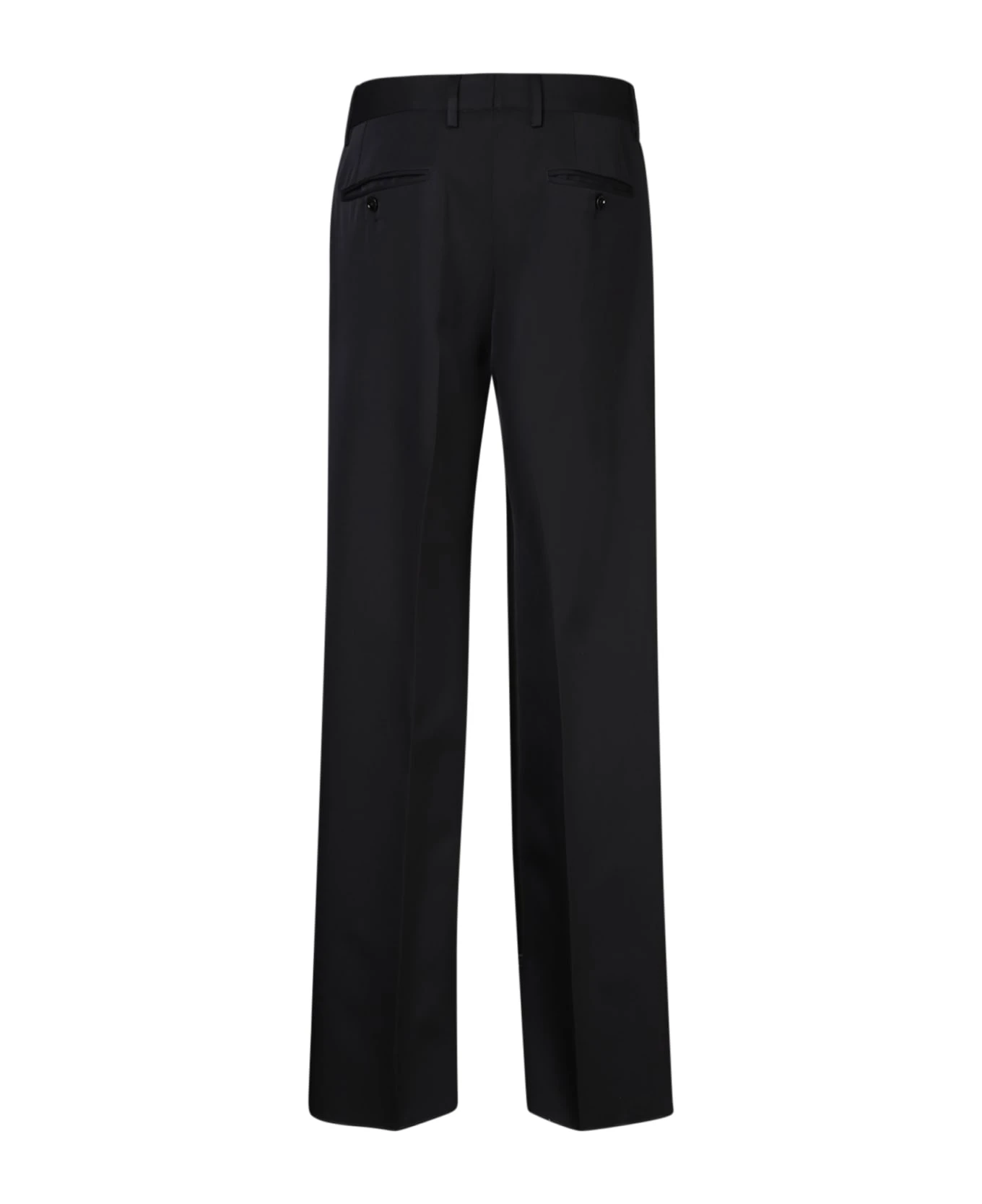 Regular rise. Concealed front fastening. Belt loops. Two side pockets. Two rear pockets. Tonal stitching. Straight leg. Straight hem. Color: black