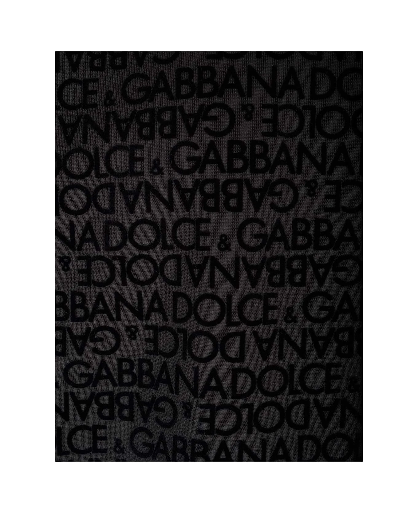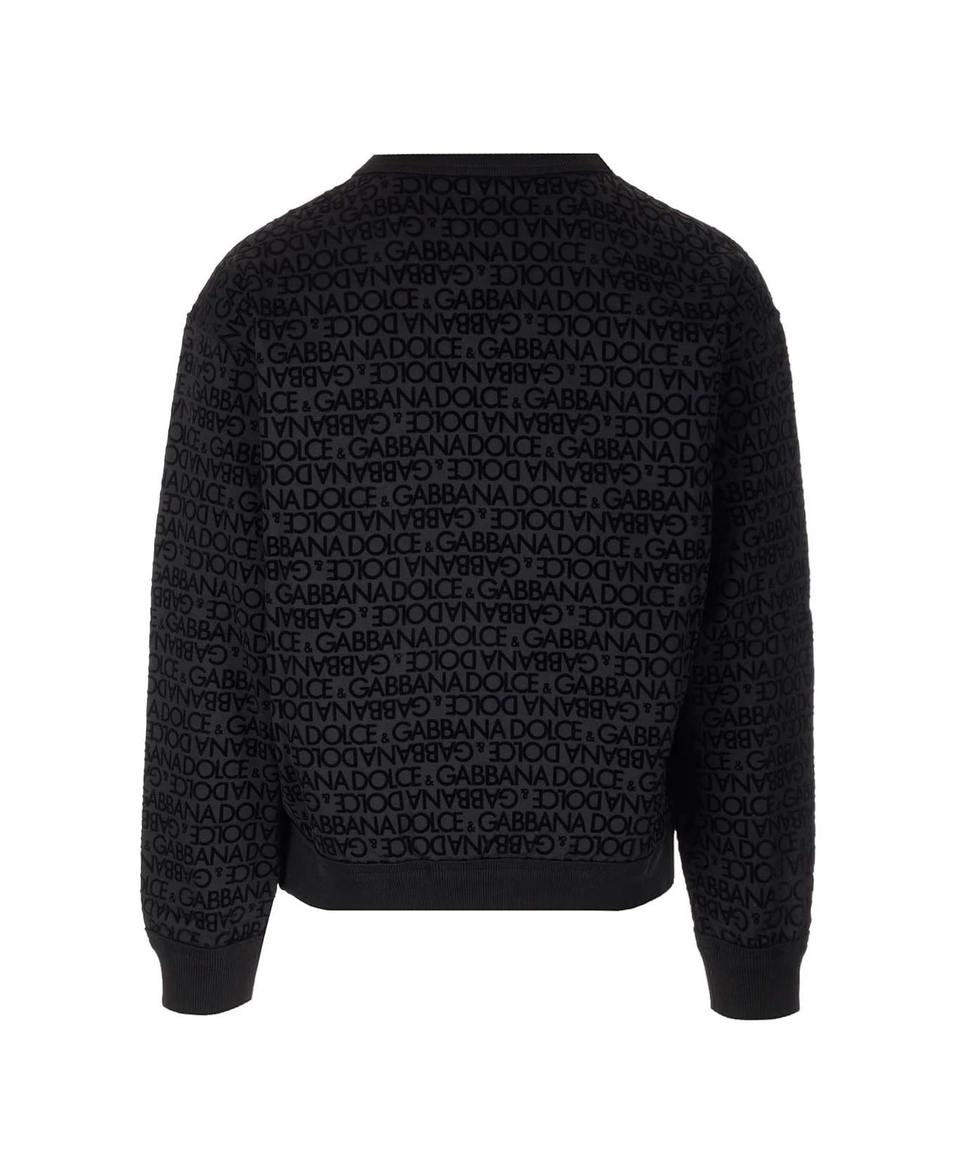 Black sweatshirt from Dolce & Gabbana in cotton, all-over velvet monogram, long sleeves, raw cut crew neck.