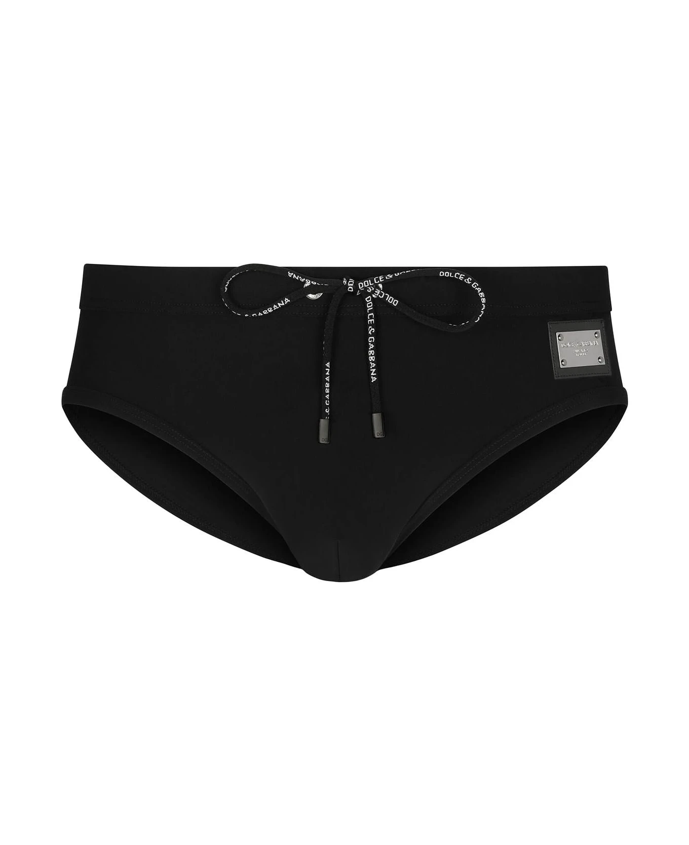 Dolce & Gabbana swim briefs crafted in stretch technical jersey with drawstring waistband and iconic applique plate. The item in photo corresponds to size 3 IT.