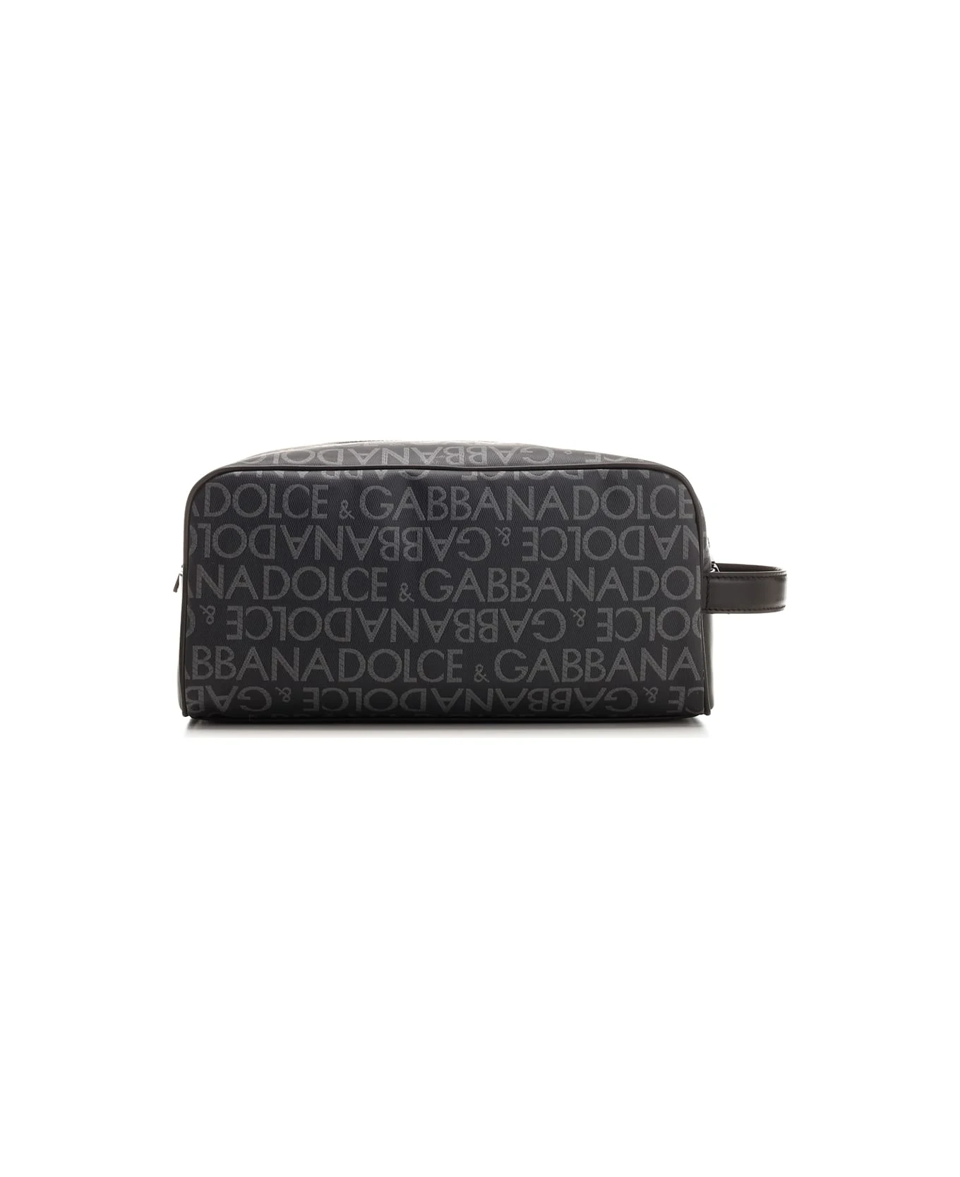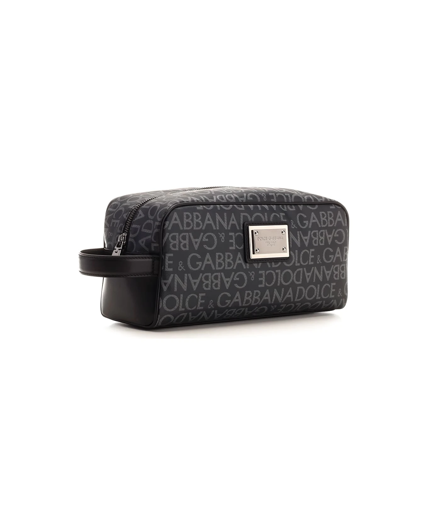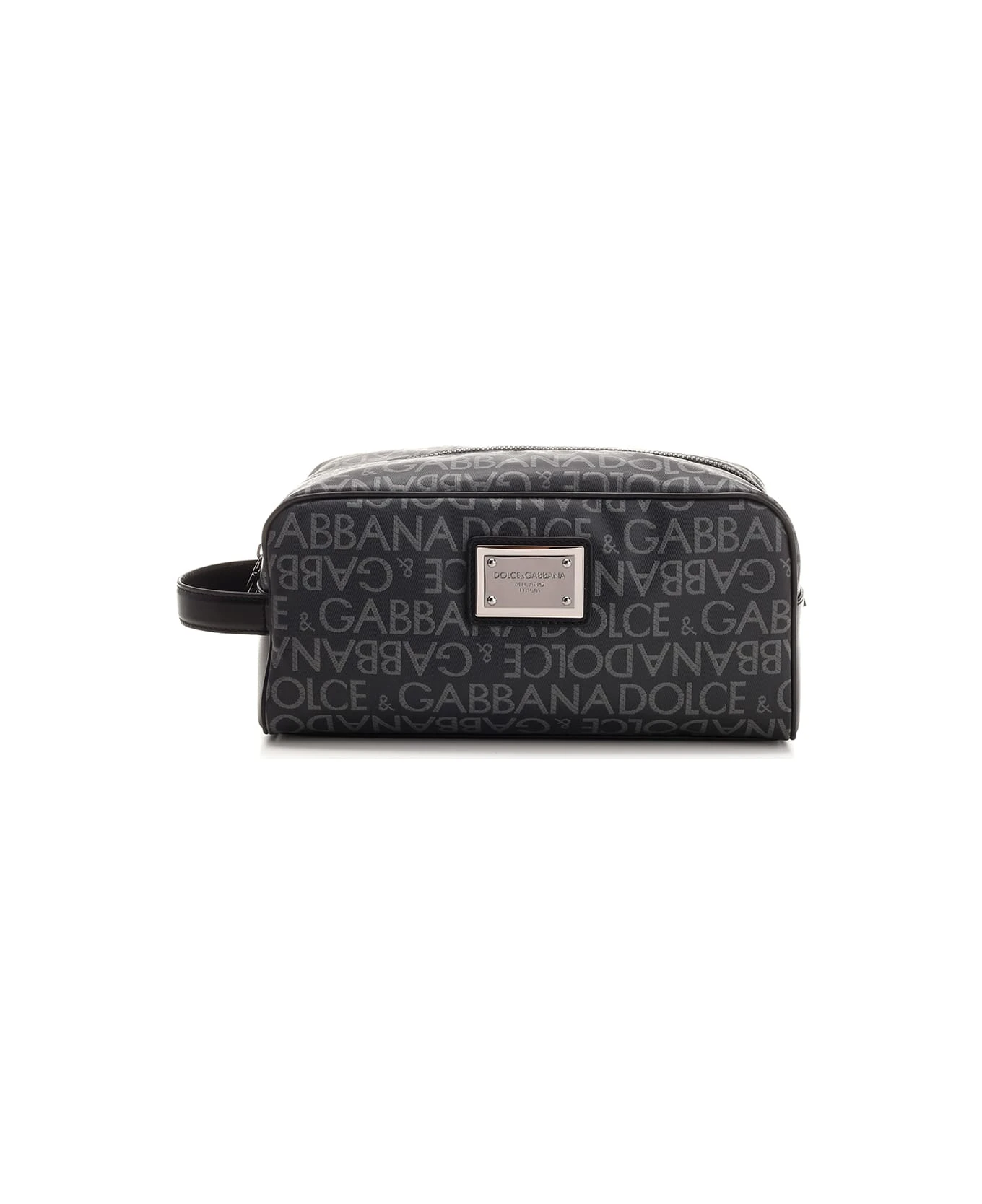 Toiletry bag from Dolce & Gabbana, all over logo, top zip closure with logo slider, nylon lining with logoed label in calf leather, logoed plate applied on the front.