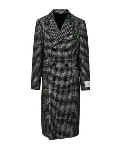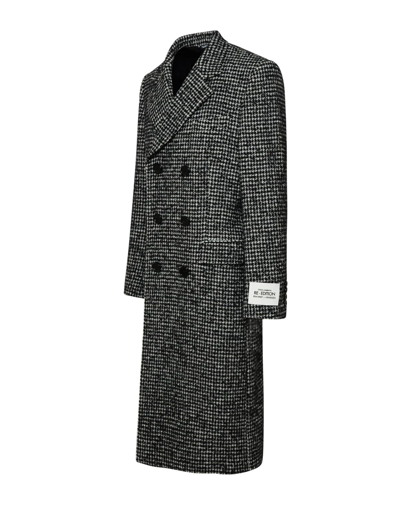 Double-breasted coat with ‘Pied de Poule’ pattern and ‘Re-Edition’ label, regular fit, mirror lapels, flap pockets and chest pocket, inner welt pockets with button, front button closure, buttons on the cuffs, central split at the back